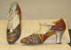 Leather, silk, wrapped metallic yarn, wood; compound weave, hand dyed