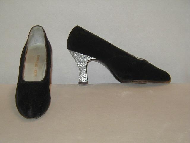 Black velvet shoes with studded crystal heels