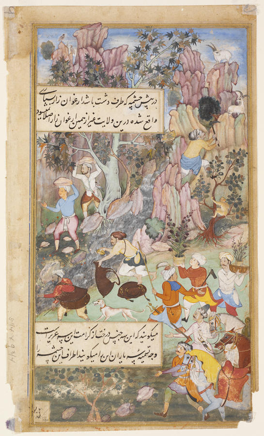 Workmen in a Garden; Page from a manuscript of the Baburnama, around 1590