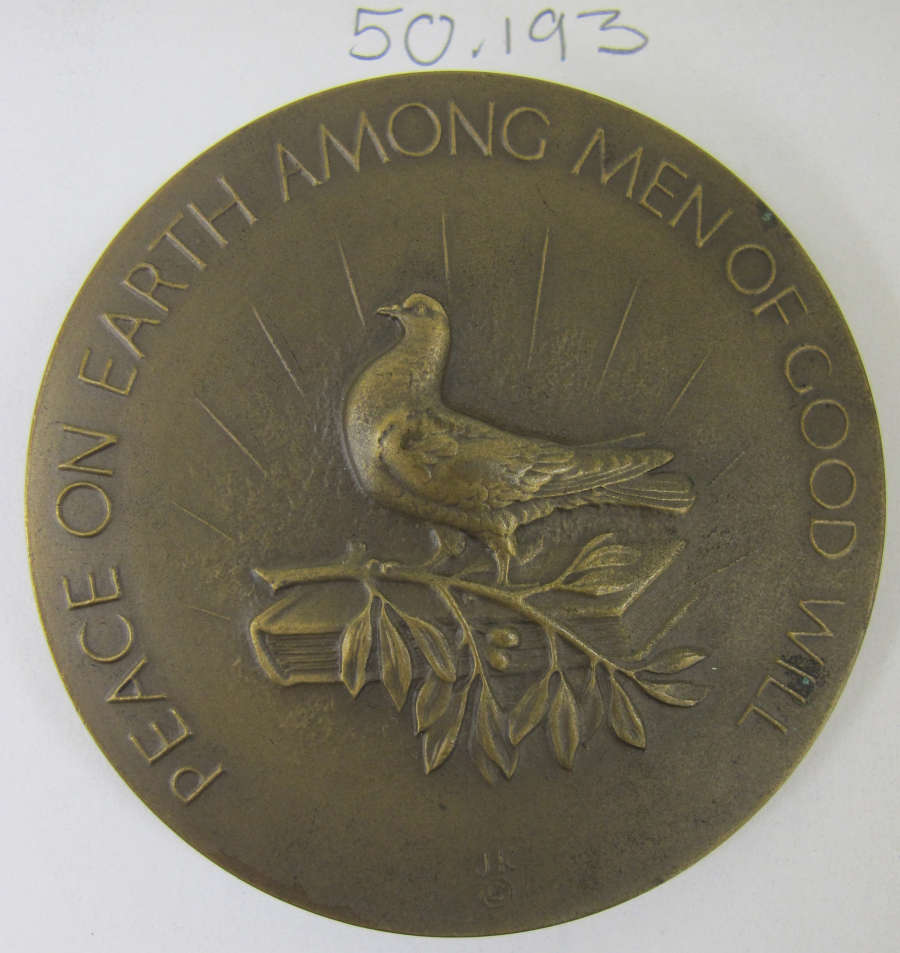 The images on this website can enable discovery and collaboration and support new scholarship, and we encourage their use. This object is in Copyright. This object is World Peace Medal with the accession number of 50.193. To request new photography, please send an email to imagerequest@risd.edu and include your name and the object's accession number.