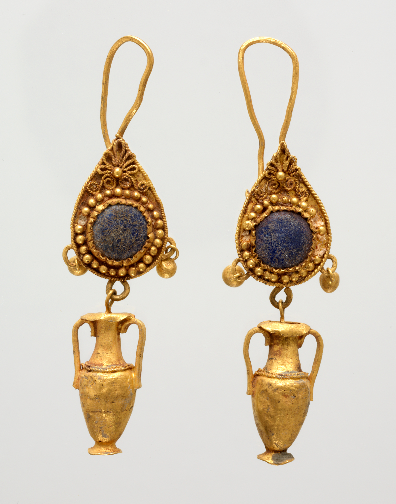 Pair of earrings with amphora pendants, Hellenistic