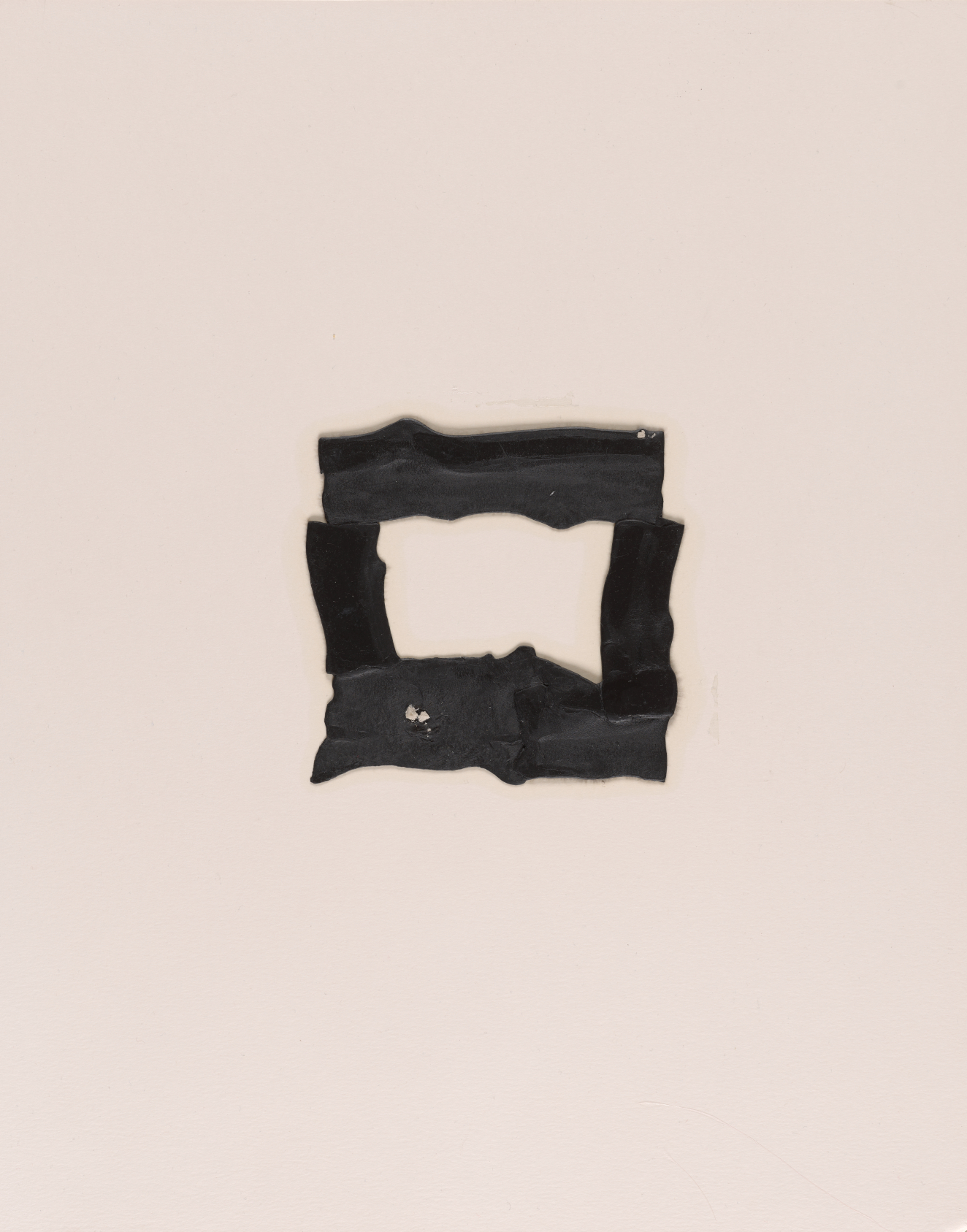 Diagonal front view of a rectangular gray ceramic sculpture featuring a row of horizontal loops threaded and protruding from the surface. The back features forms organized in a similar manner.