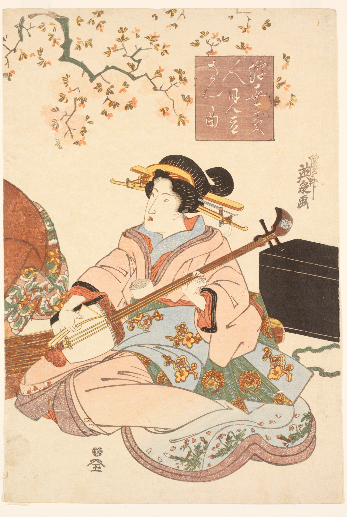 Beauties of the Floating World as Three Musical Instruments (Ukiyo bijin mitate sankyoku), Edo Period