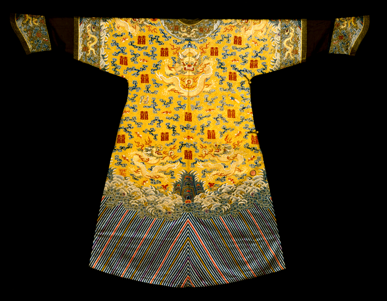 Summer festive robe (jifu or ch'i-fu) for an empress with dragons clouds, twelve imperial symbols, and the symbol for double happiness (shuangxi, Ching Dynasty
