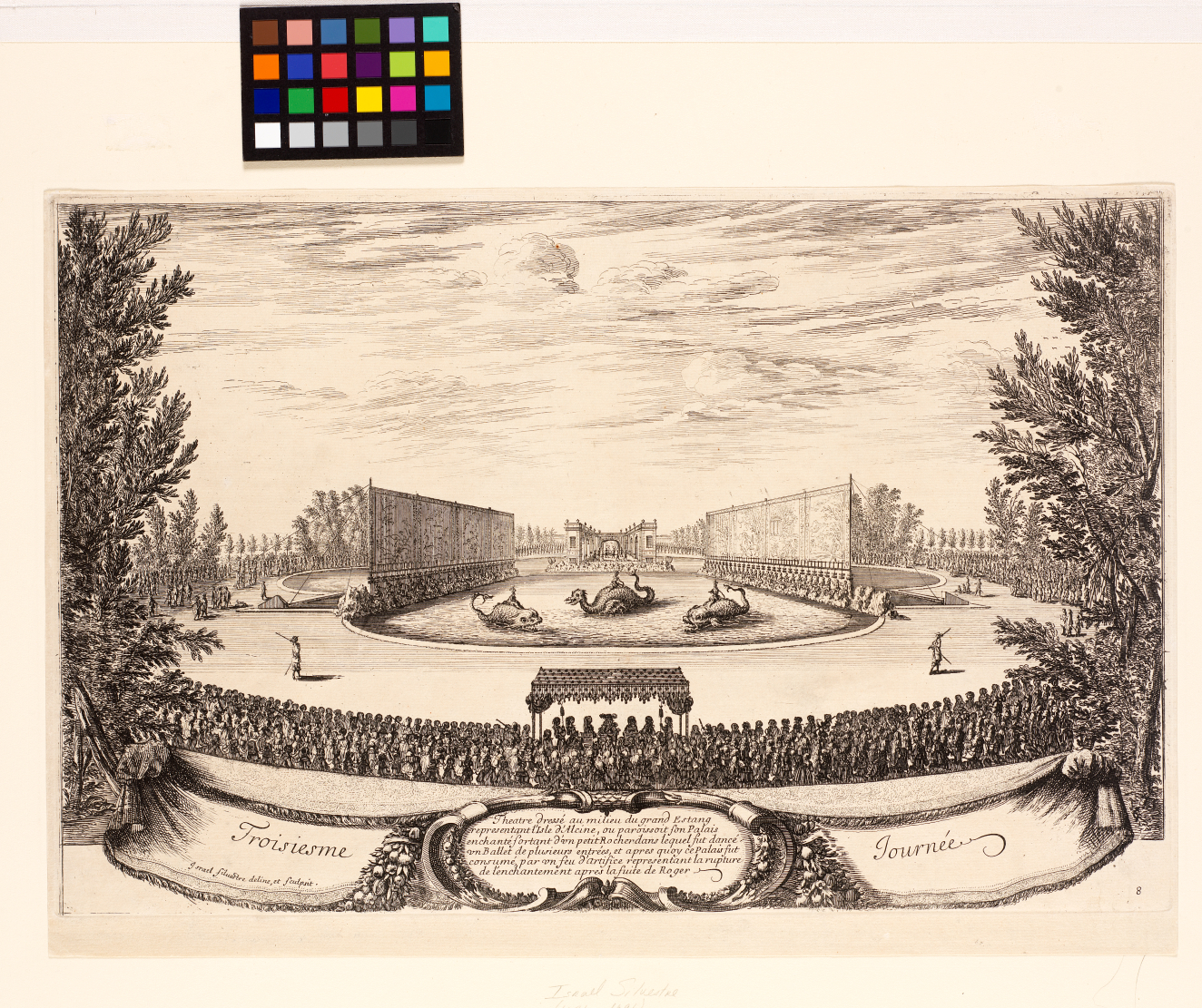 Troisiesme Journée: Theatre dressé au milieu du grand estang representant l'Isle d'Alcine (Third Day: Theater set amidst the great pond representing the Isle d'Alcine)