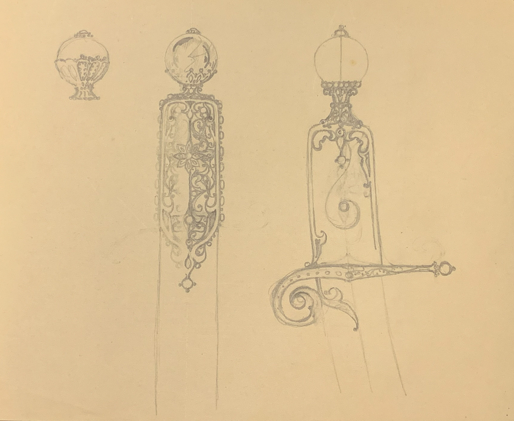 birdcage bracket for Mrs. Babbot, curio shelf, pole