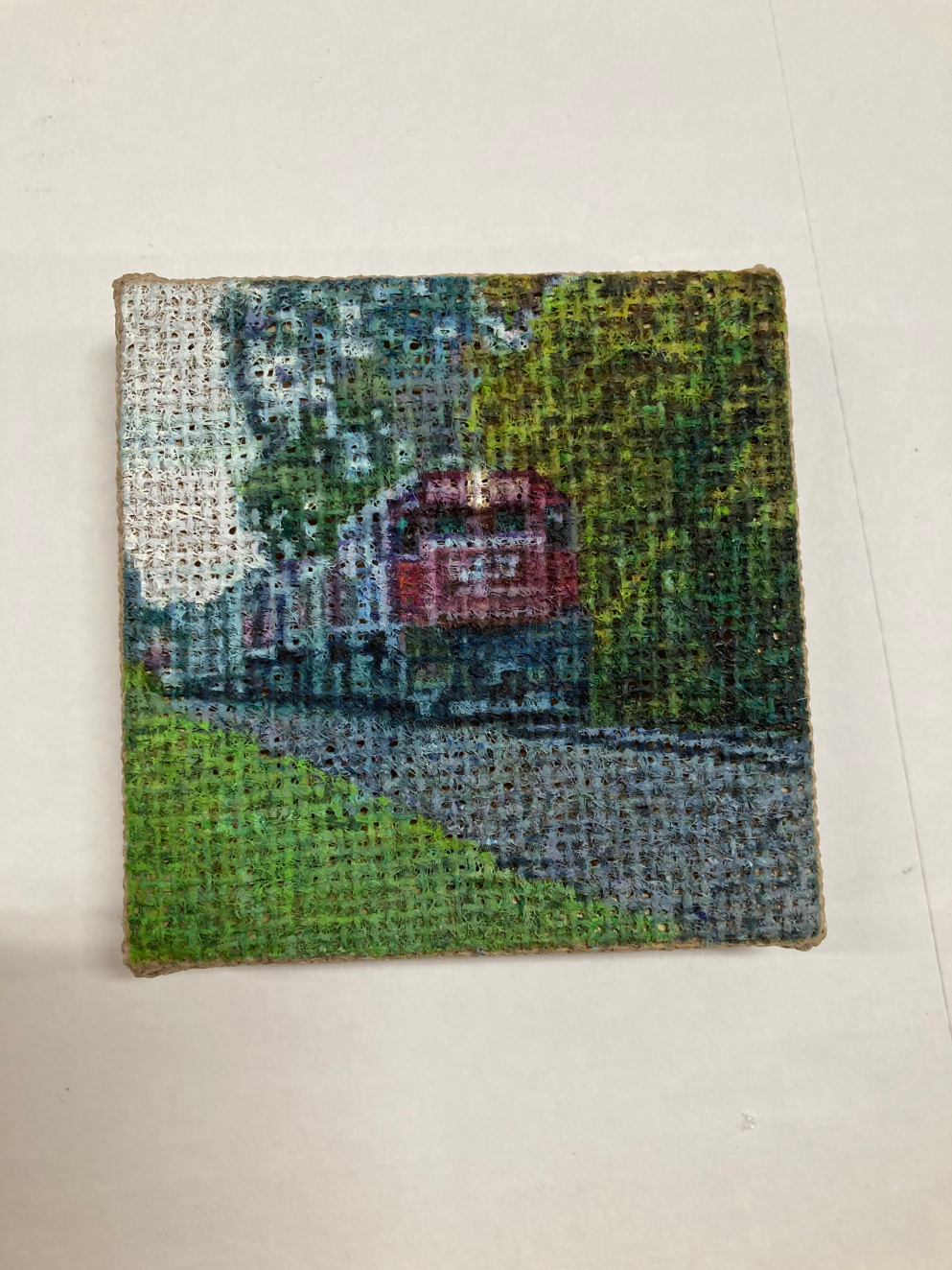 A painting of distorted, elongated humanoid and animal-like figures rendered with a light, muted color palette, their forms blending surreally into a shaded, textured background.