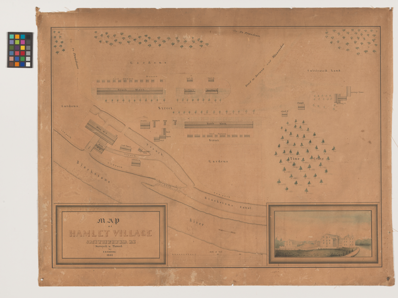 Map of Hamlet Village Smithfield. R.I. Surveyed & Platted by S. B. Cushing.1844