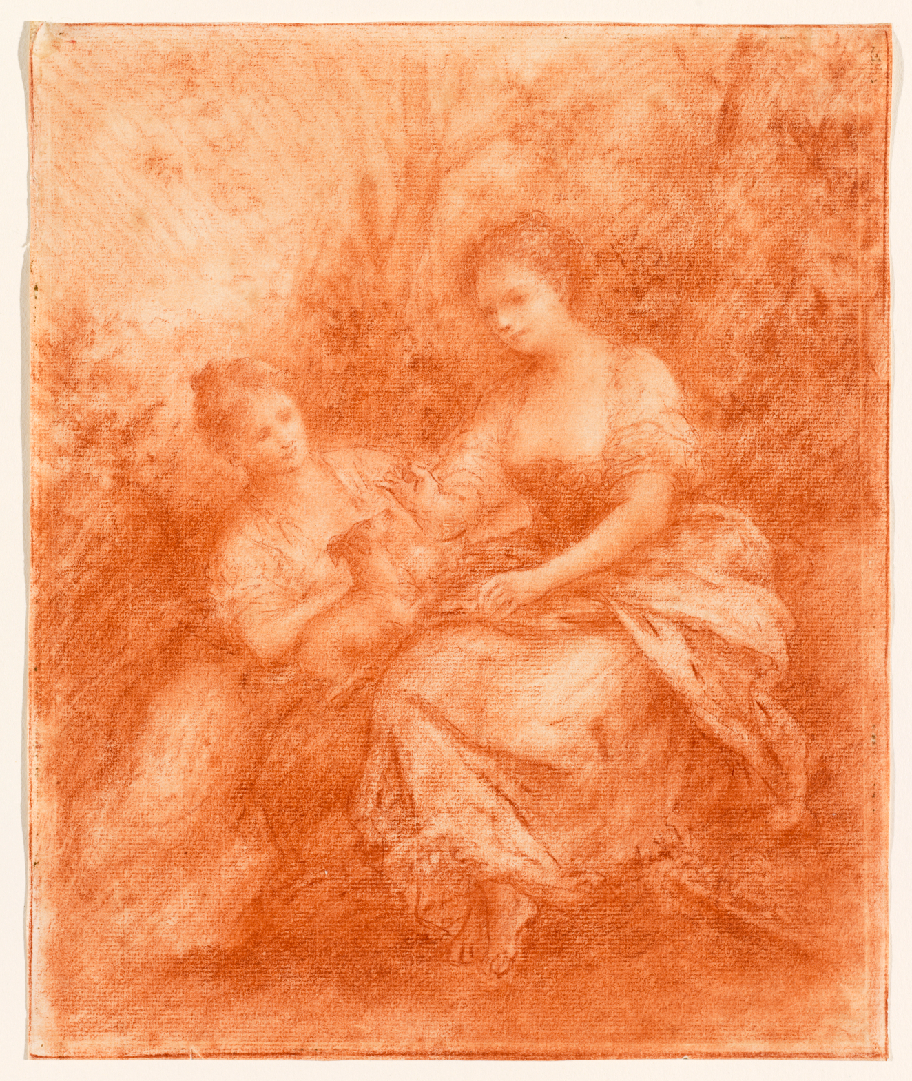 A painting of distorted, elongated humanoid and animal-like figures rendered with a light, muted color palette, their forms blending surreally into a shaded, textured background.