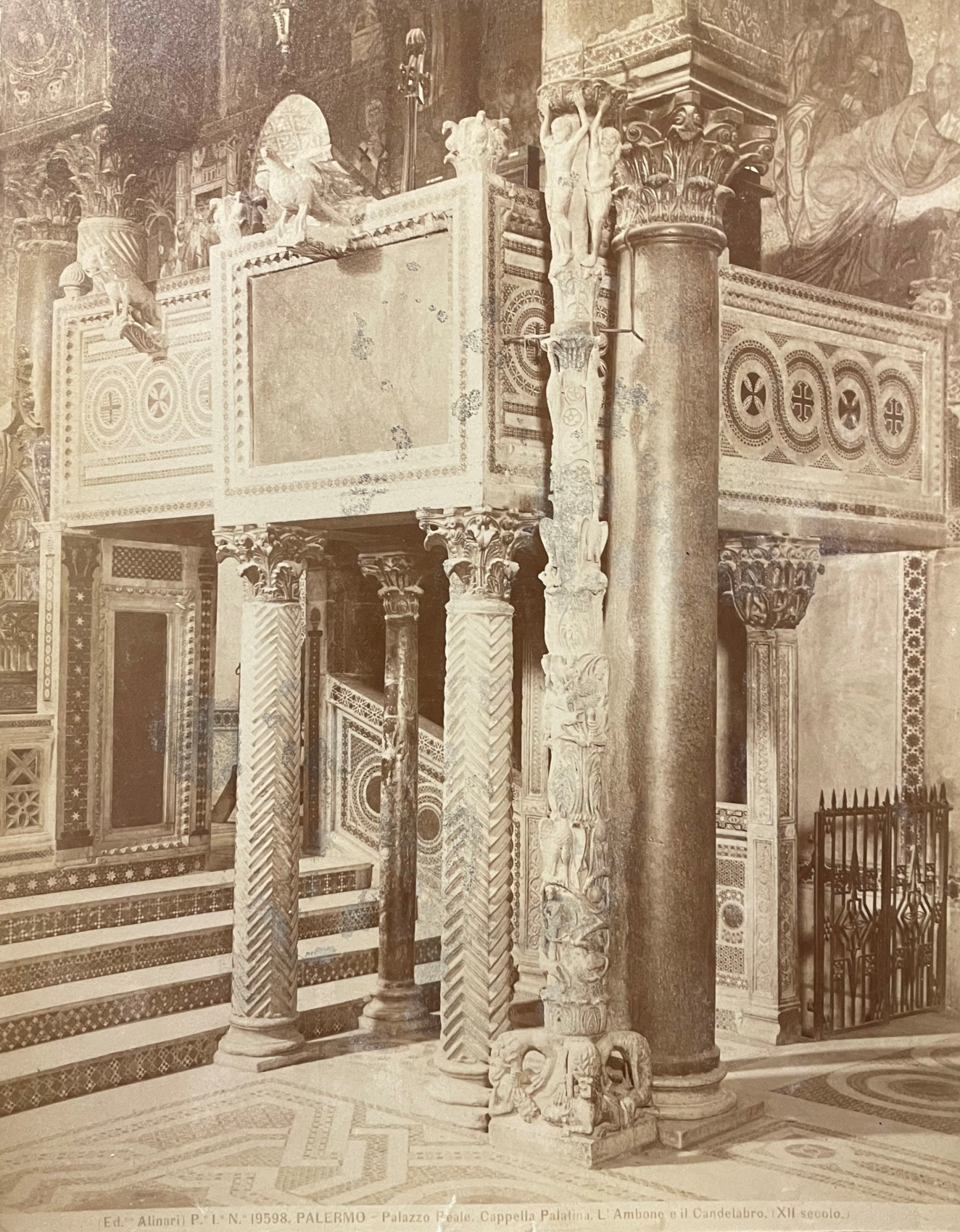 19598 Palermo-Palazzo Reale Cappella Palatina. L'ambone e il Candelabro (XII Secolo)