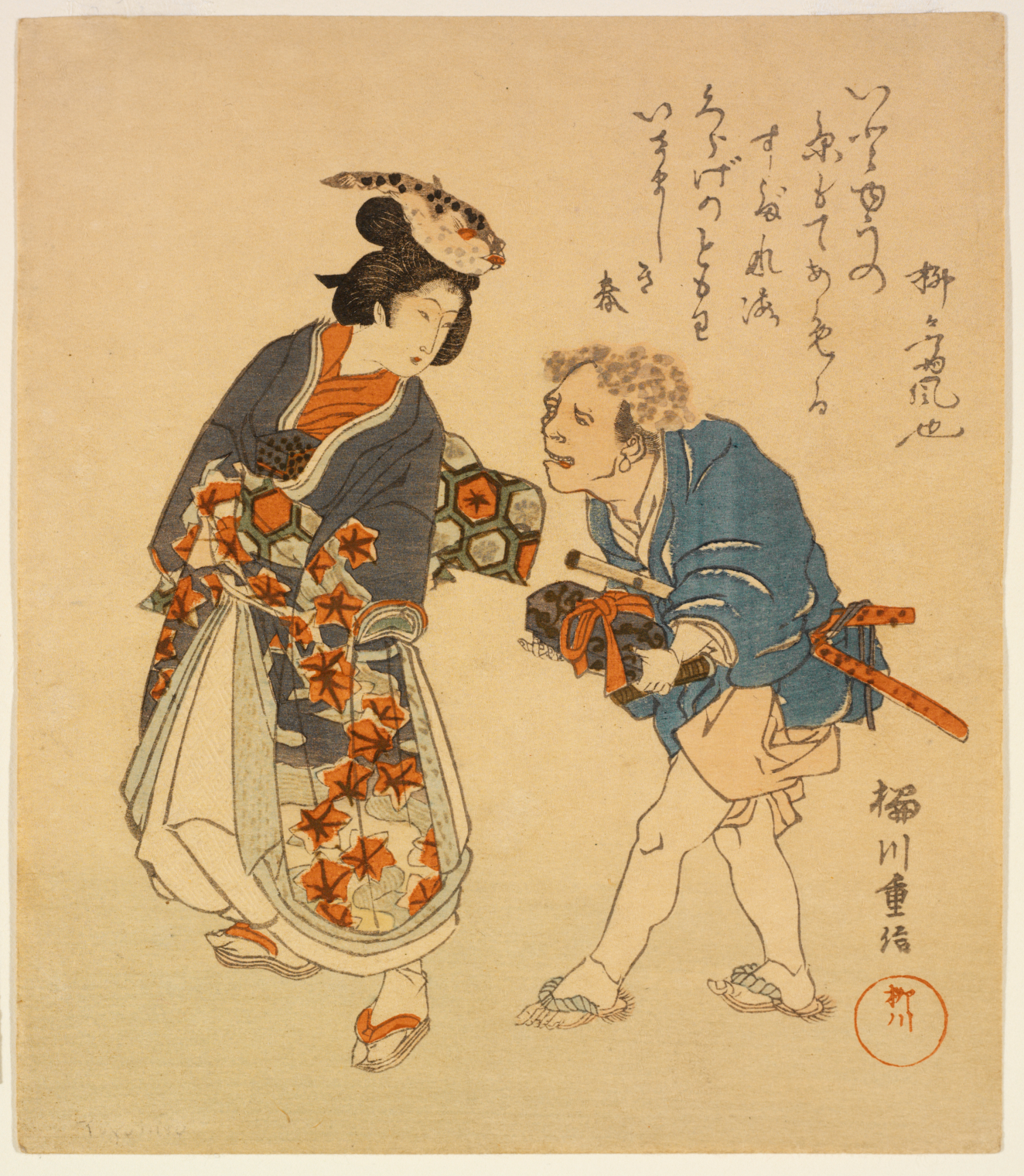 Beauty (Blowfish-head) and attendant (jelly fish-head) (Bijin (fugu) to yakko (kurage)), Edo (Japanese period)