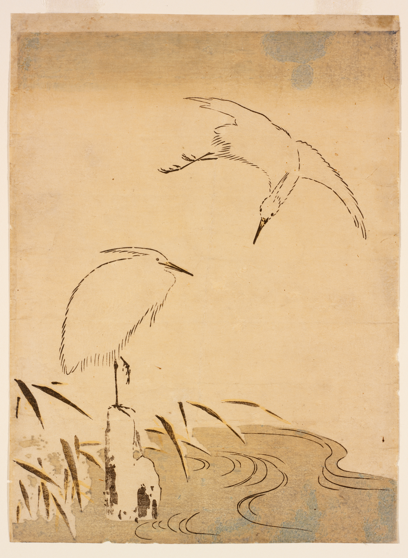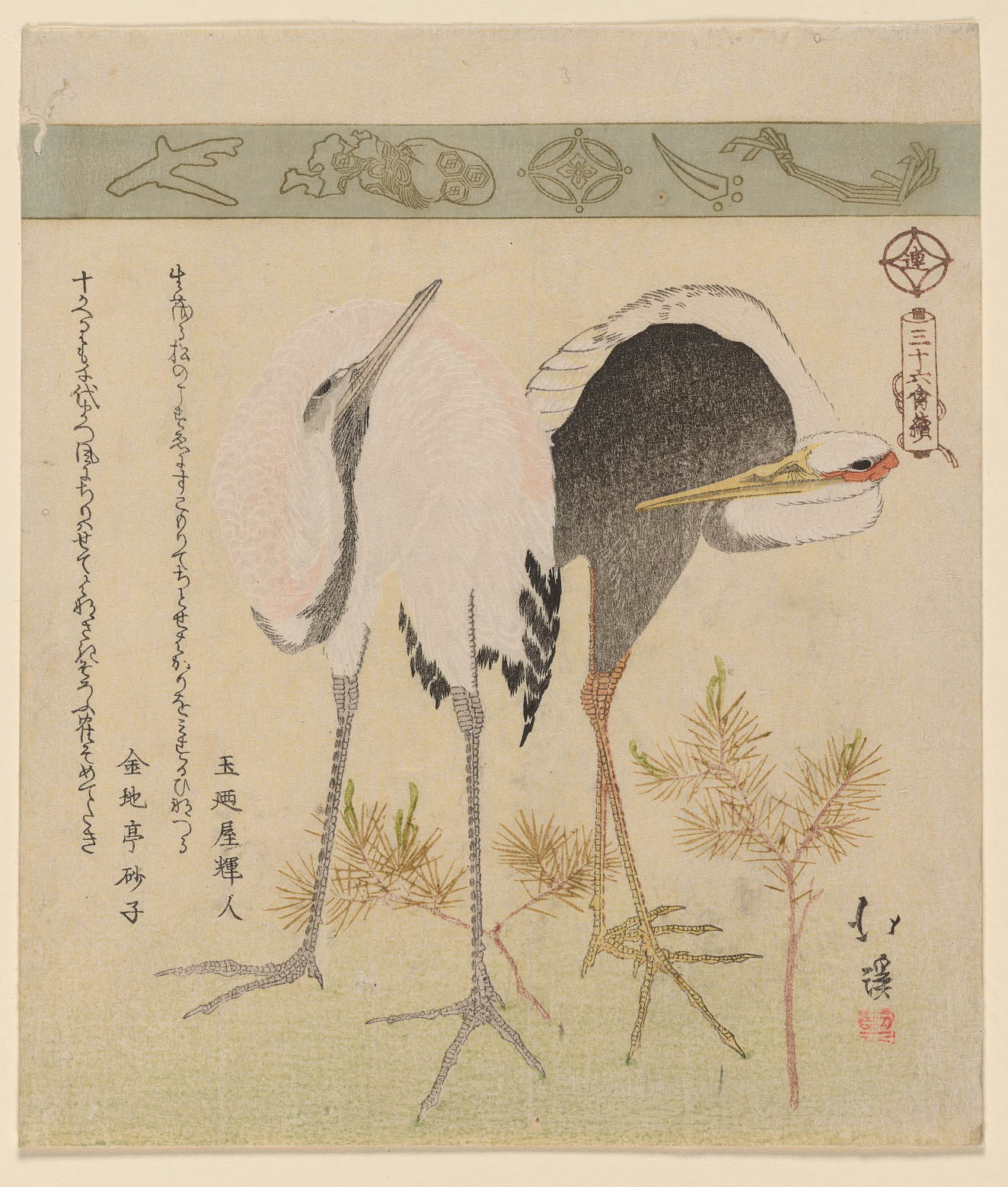 Cranes cherry, and old well (Furuido ni sakura to tsuru), Edo (Japanese period)