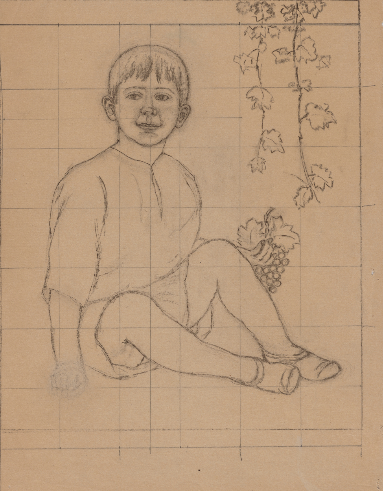 Gridded Preparatory Study for the Portrait of Mary Elizabeth Sharpe & Henry D. Sharpe Jr.