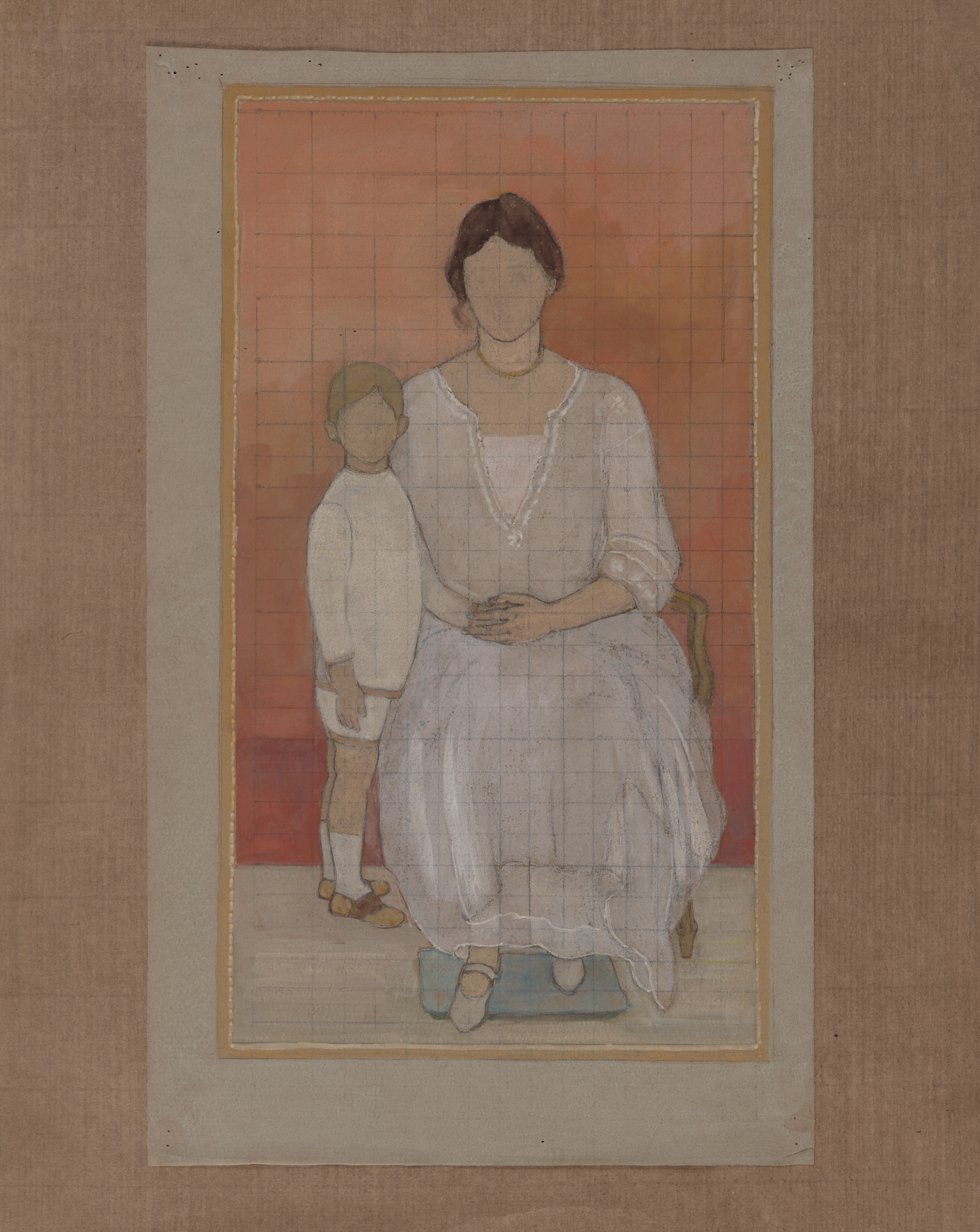 Gridded Preparatory Study for the Portrait of Mary Elizabeth Sharpe & Henry D. Sharpe Jr.
