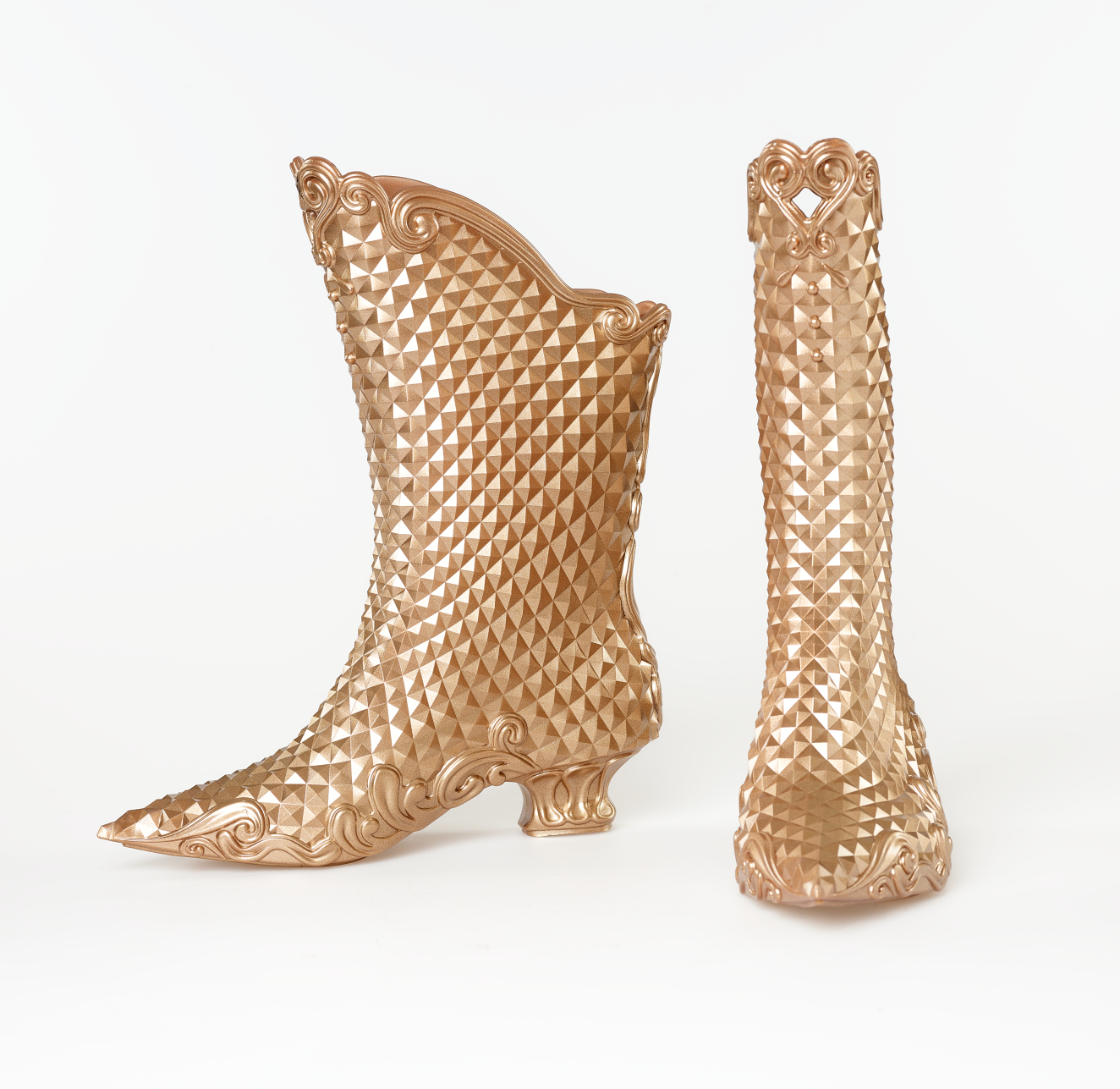 A black-and-white scene of a blurred cyclist in the foreground rides past a desolate landscape of block-style apartments and a smokestack with power lines stretching across the sky.