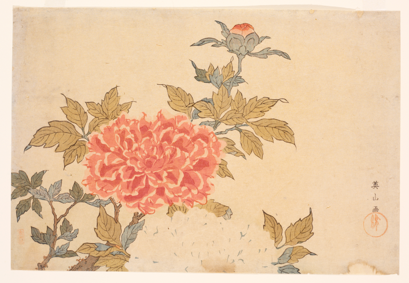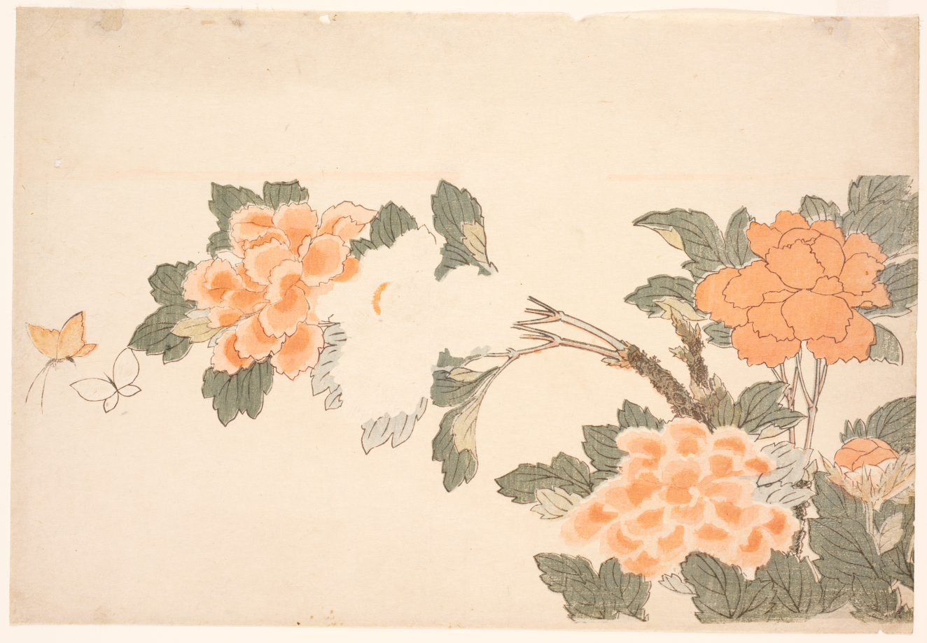 Still life with weeping willow plum and camellia (Seika shidareyanagi to ume to tsubaki), Meiji
