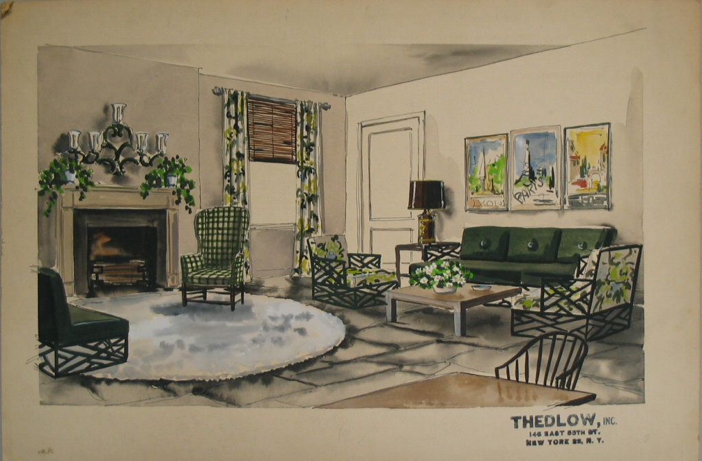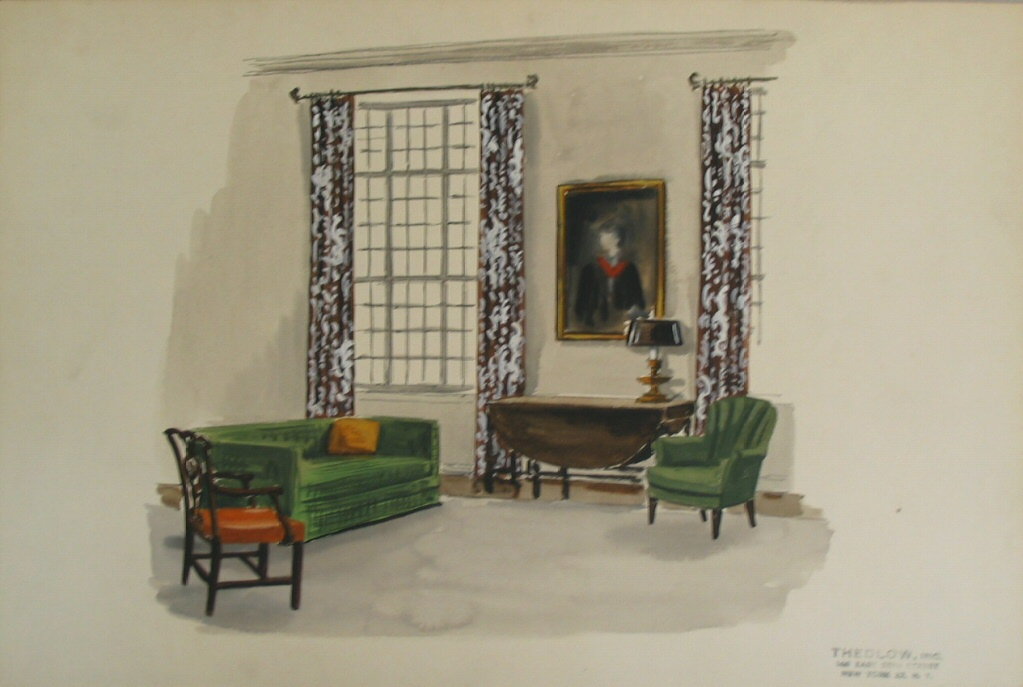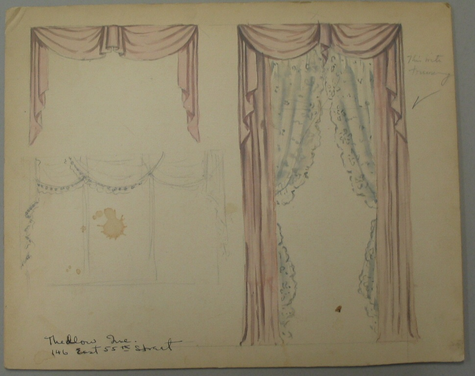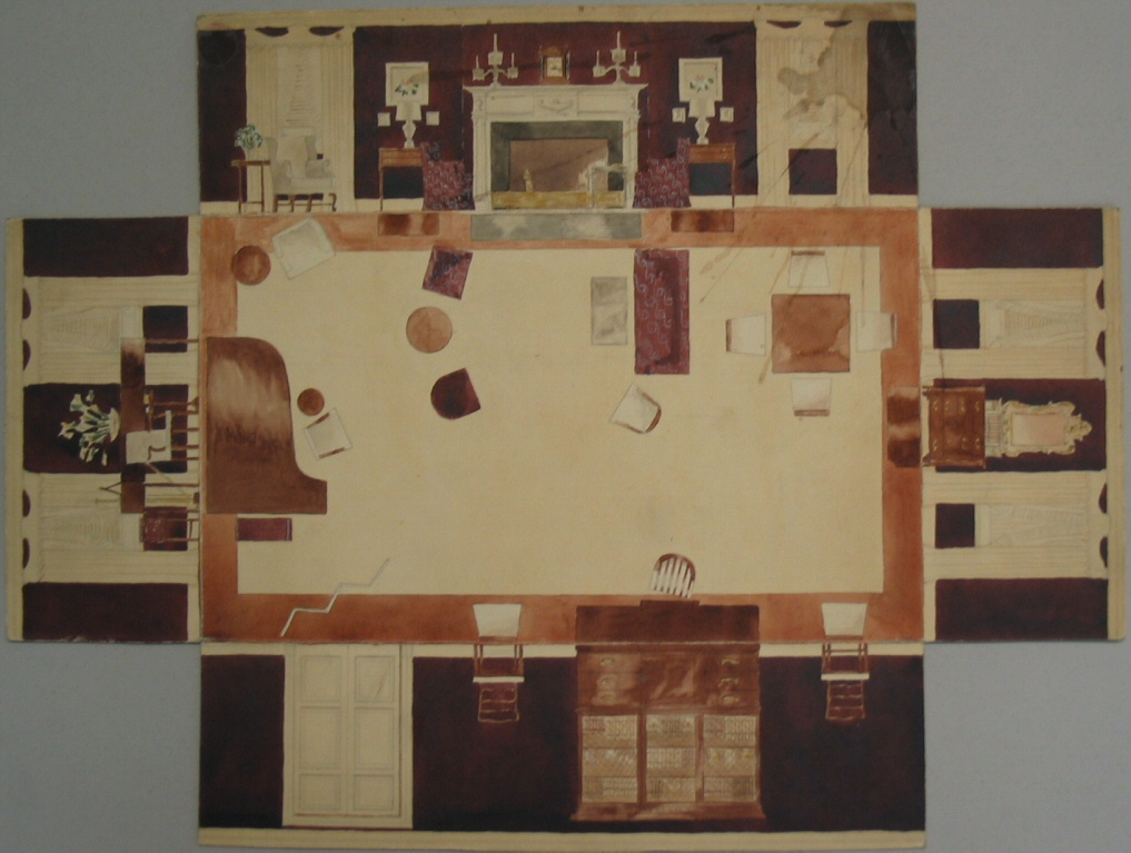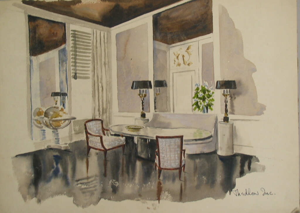 Plan and elevation (in pencil) of bar and serving counter porch, storage for garden furniture, etc.