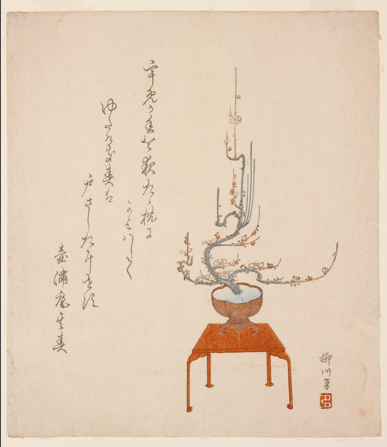Still life with weeping willow plum and camellia (Seika shidareyanagi to ume to tsubaki), Meiji