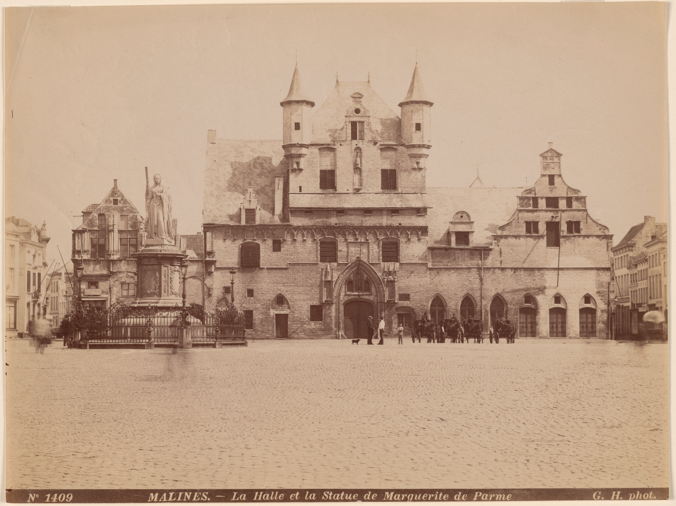 1409. Malines - La Halle et la Statue de Marguerite de Parme