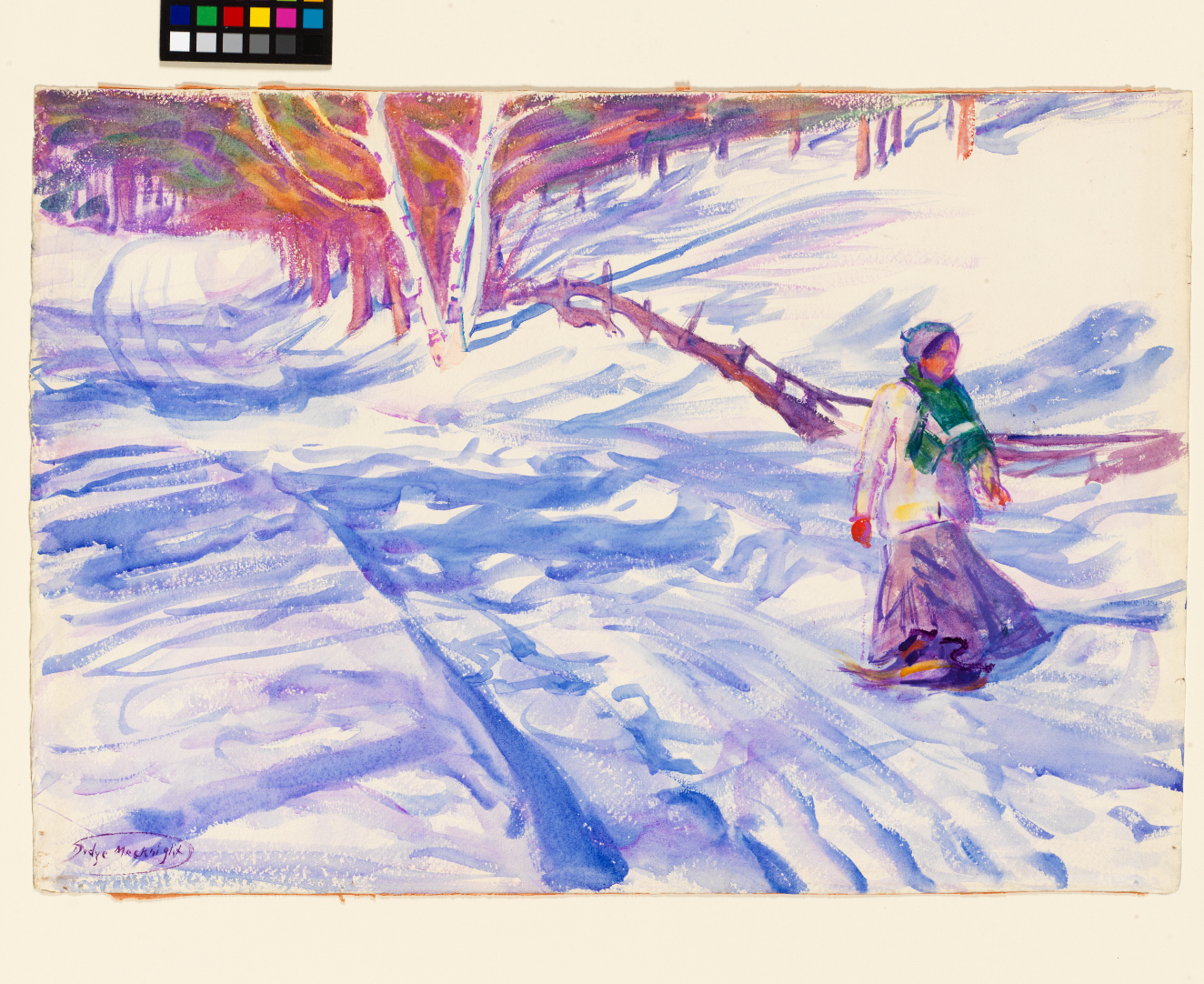 Colorful illustration of two figures sitting on a doorstep on the right, appearing to be waiting. On the left, a store is labeled: “PUNJABI GROCERY & DELI.” A bike leans against a railing in the foreground.