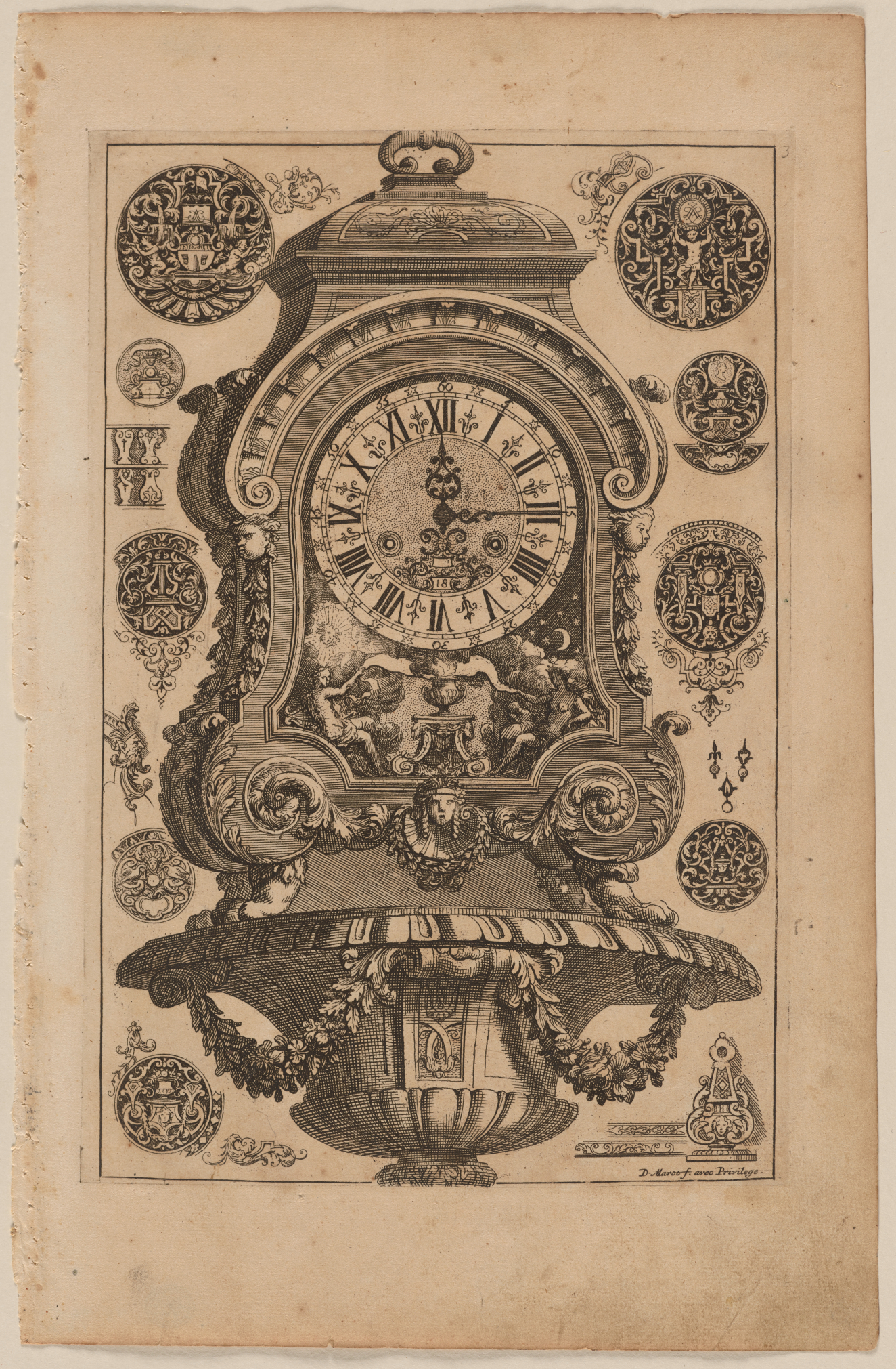 Plate from "Nouveaux Livre de Boïtes de Pendules de Coqs..." (New Book of Pendulum Clocks Pocketwatch Cases, and other things necessary to Clockmakers)