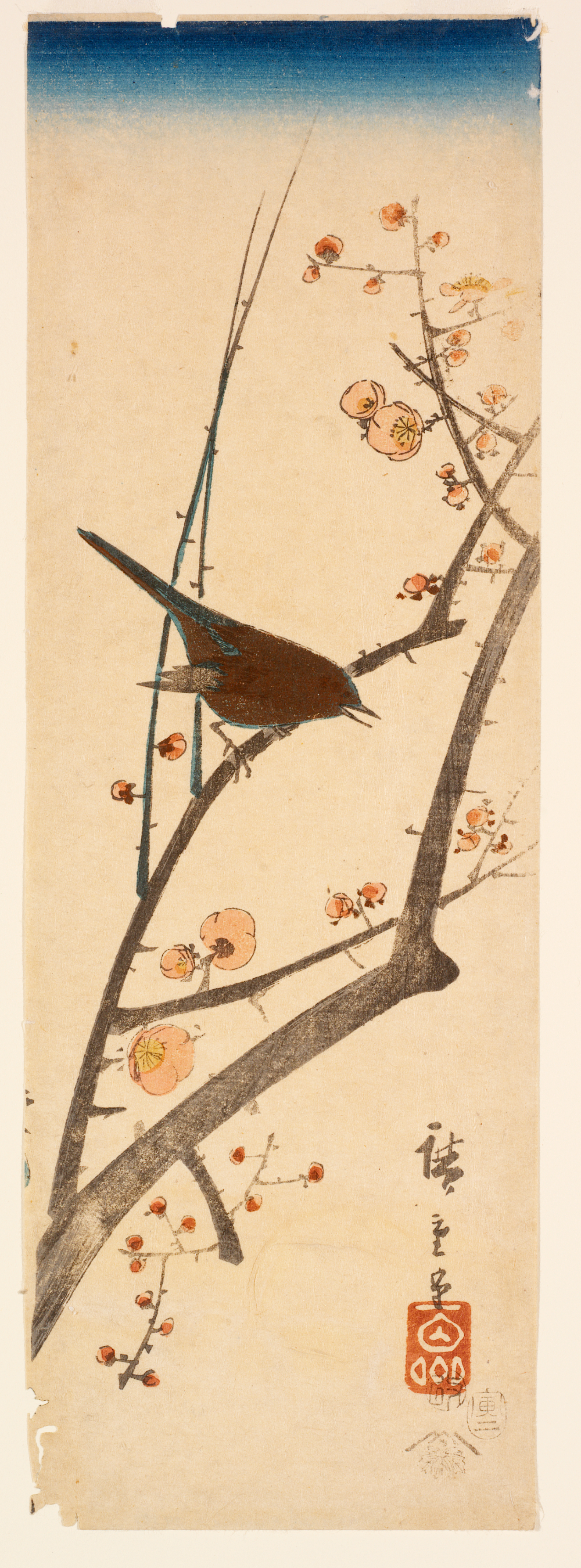 Bush warbler and white plum (Uguisu hakubai), Edo (Japanese period)