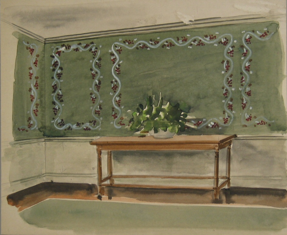 stool wood box, sideboard, carved mounted wolf's head