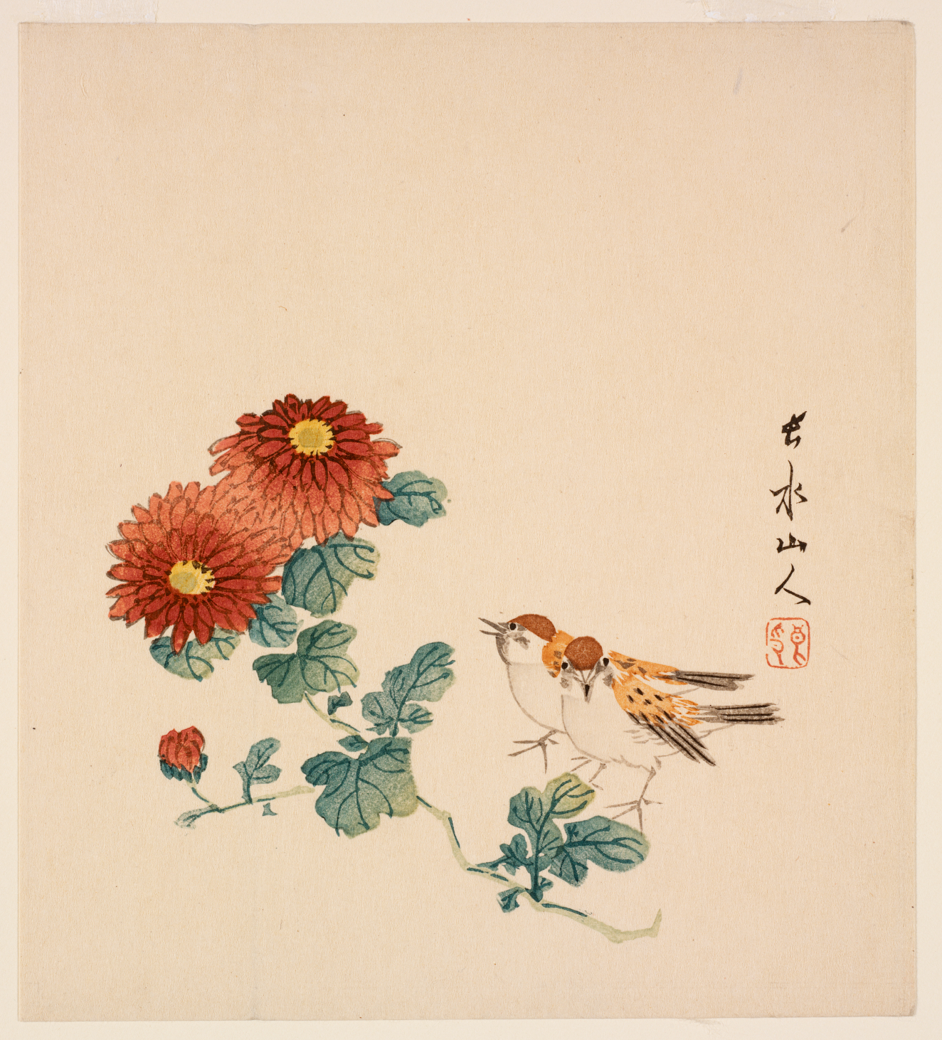 Cockerel and drum (Taiko ni tori), Meiji