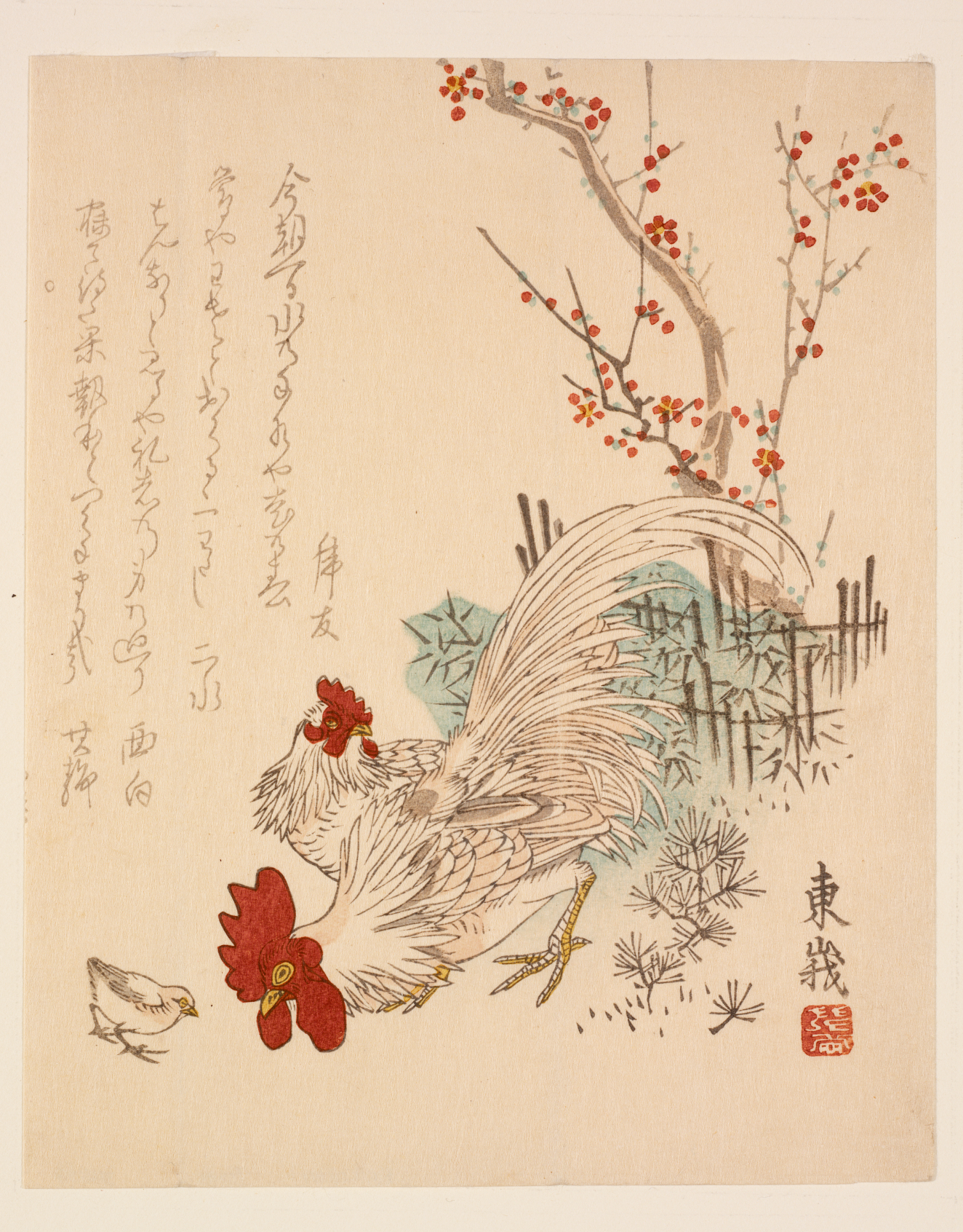 White-headed bird and camellias (Tsubaki ni kotori), Meiji