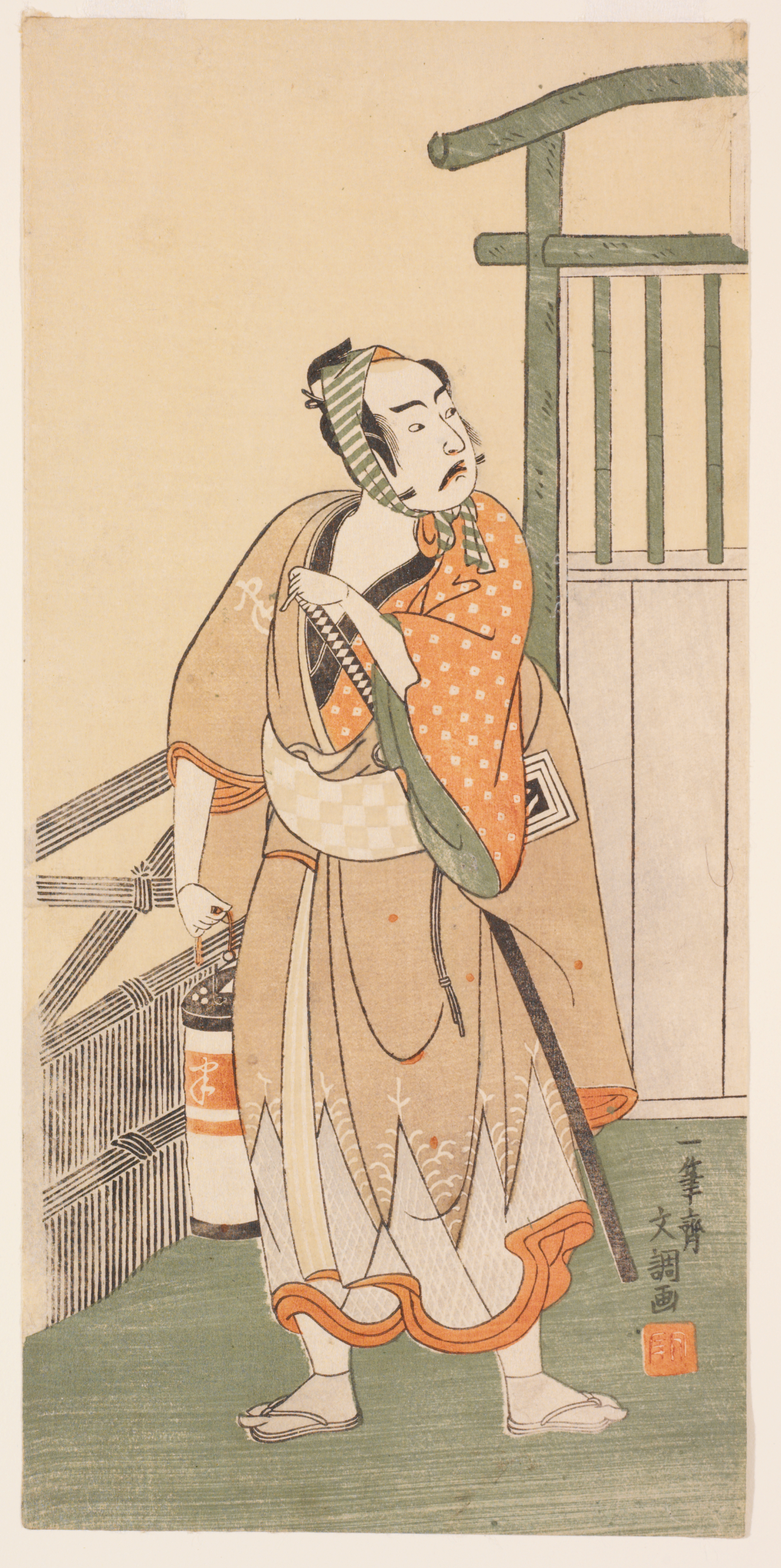 Ichikawa Sadanji as Yagyu Sajima no kami; Ichikawa Udanji as Yagyu Matajuro; Ichikawa Kodanji as Chugen Jirosuke, Edo (Japanese period)
