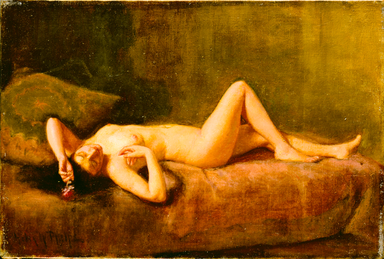 A black-toned painting with ominous abstract, elongated forms, faint linear details, small geometric white details, and a small cluster of green, blue, and red color.