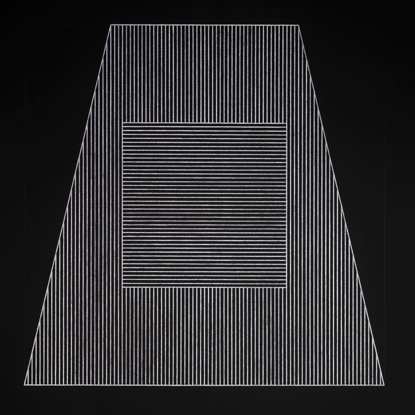 Realistically rendered etching of a cast of characters inhabiting an 18th-century mental institution. The room is populated with institutionalized men, while two upper-class women shield their eyes with fans.