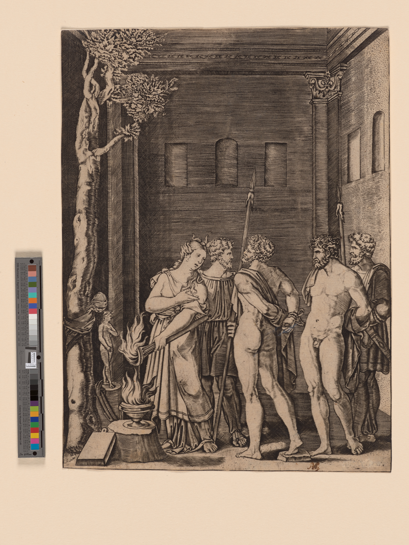 Les grimpeurs; five soldiers pulling on their armor from Michelangelo's 'Battle of Cascina'