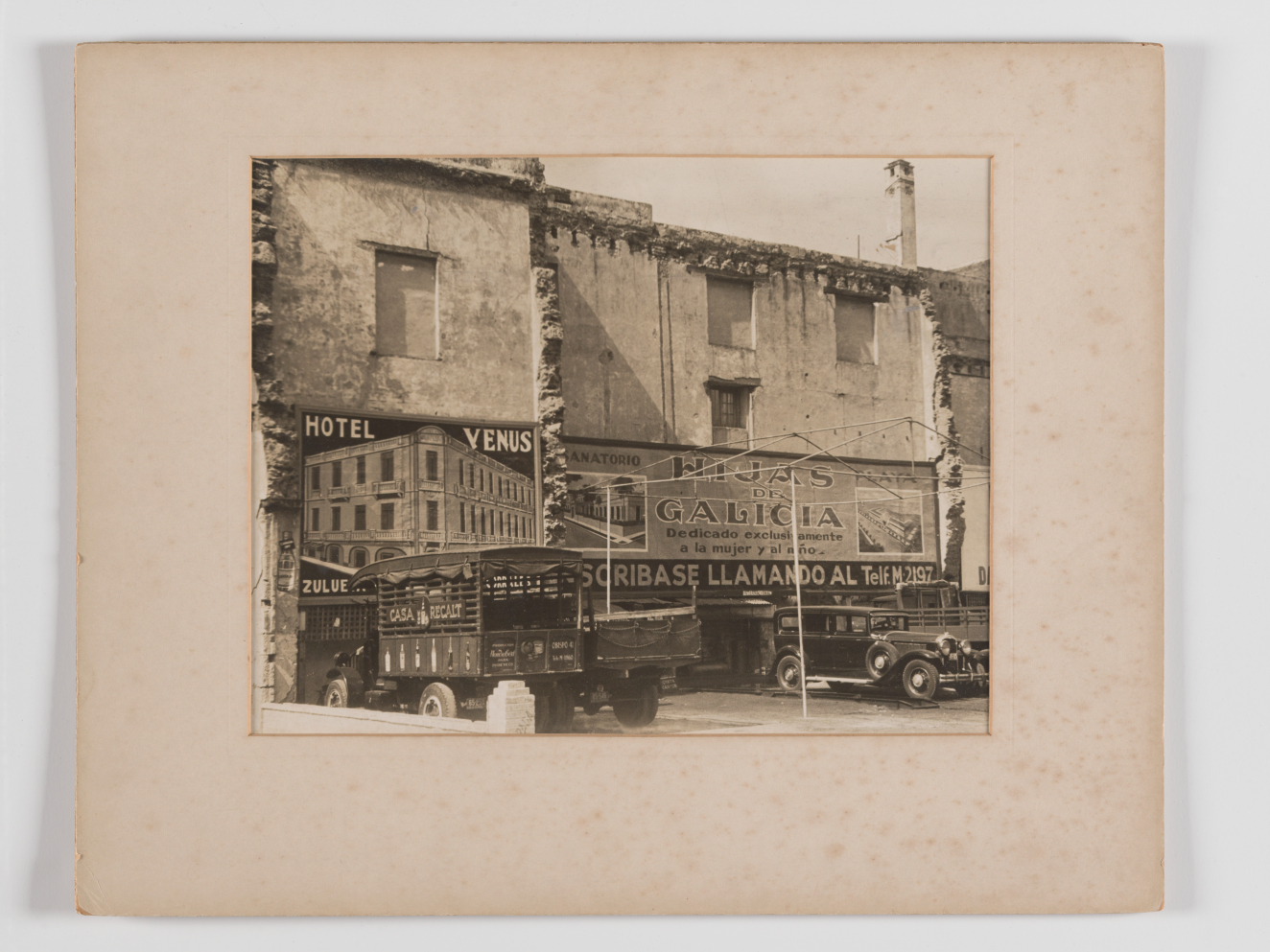 Untitled (rubble before a building with the sign "Morales y Henares")