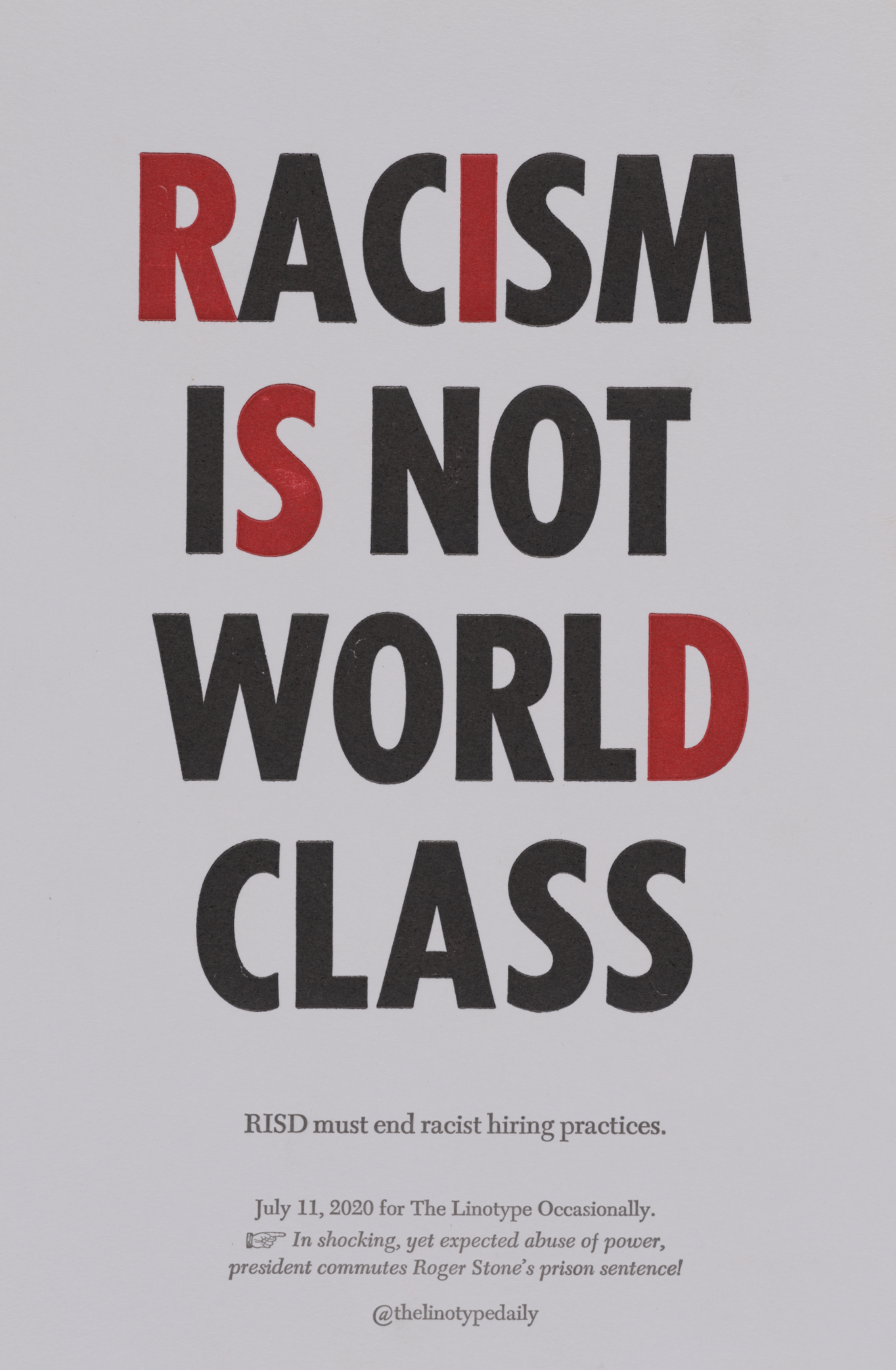 Racism Is Not World Class July 11, 2020 for The Linotype Occasionally