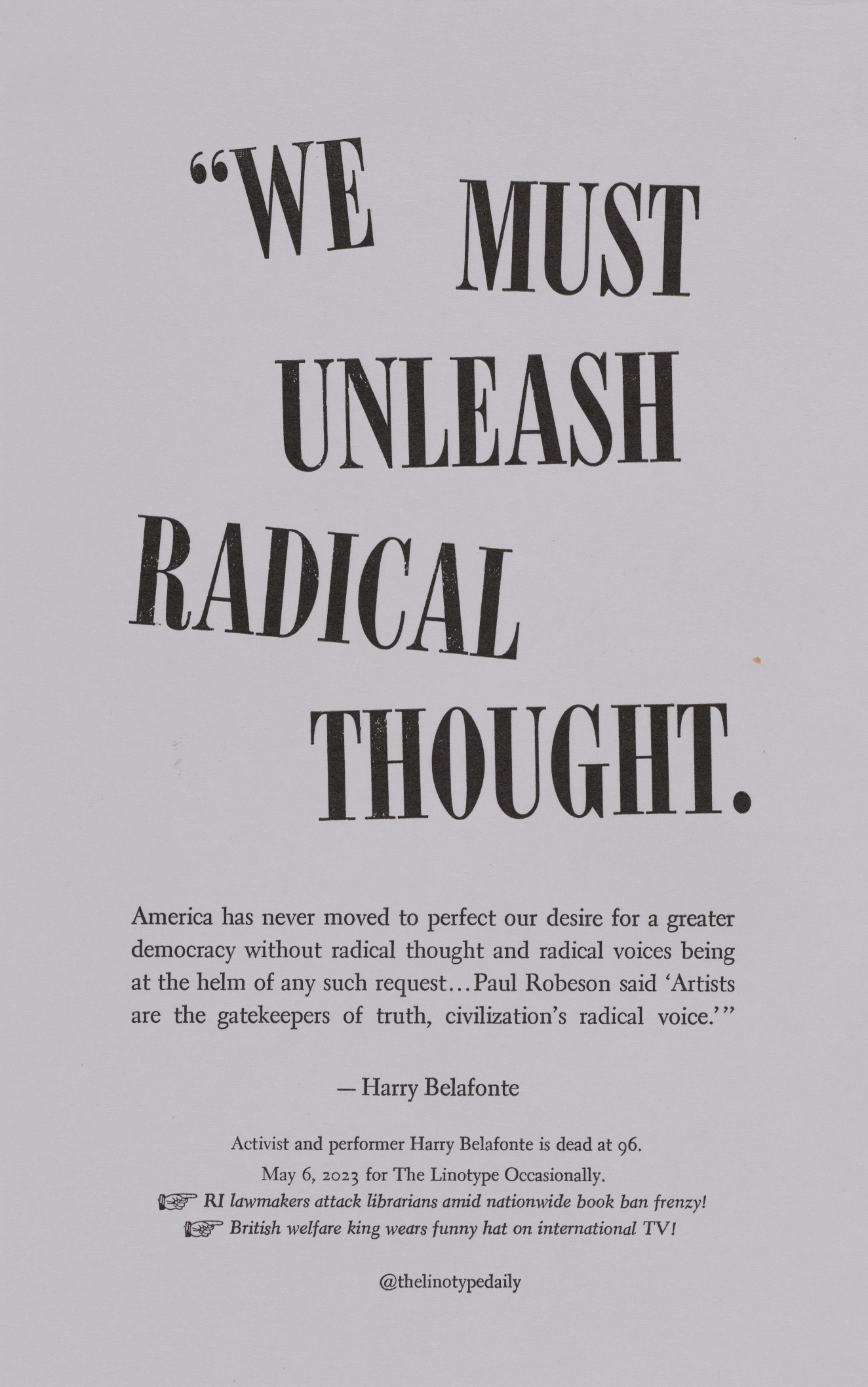 “We Must Unleash Radical Thought” May 6, 2023 for The Linotype Occasionally