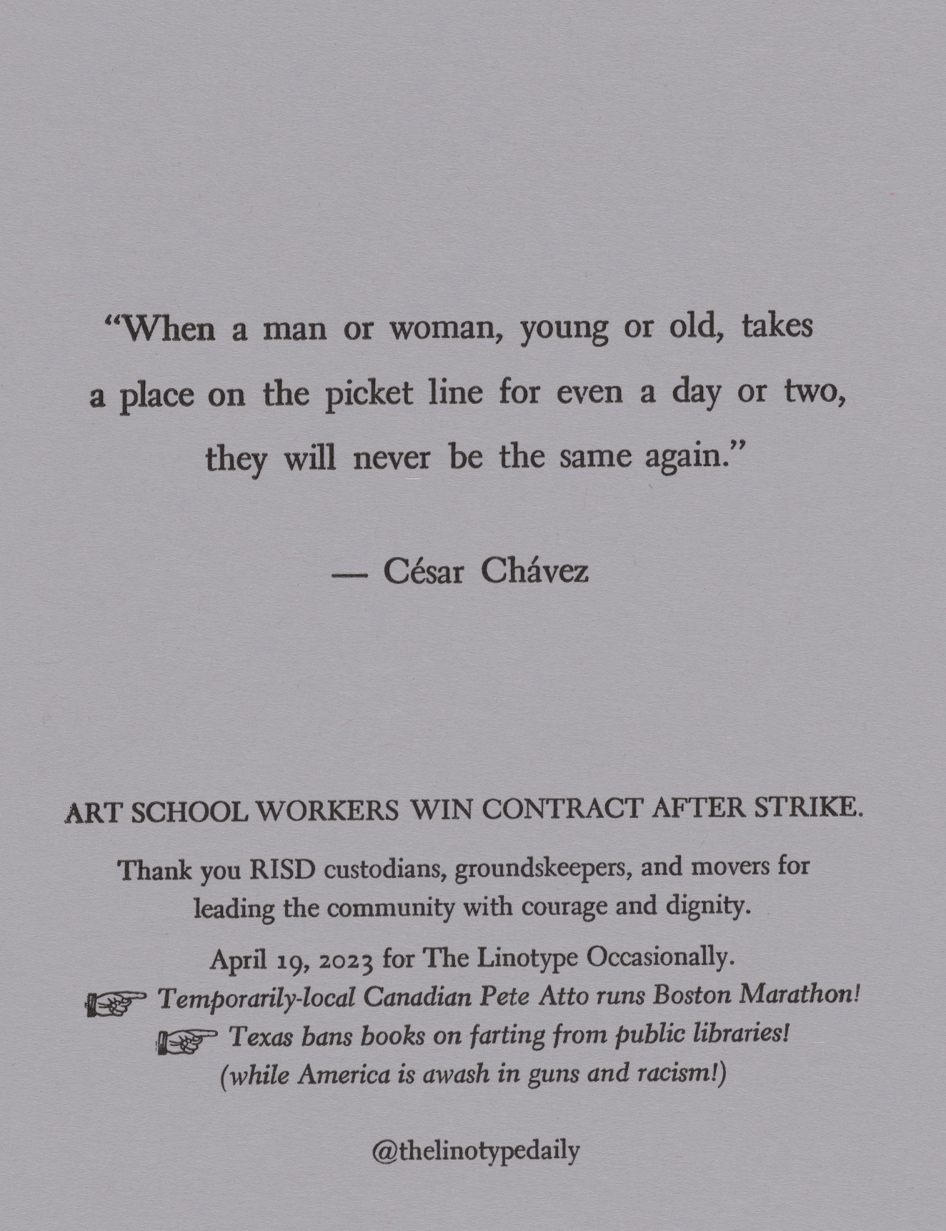 Art School Workers Win Contract After Strike April 19, 2023 for The Linotype Occasionally
