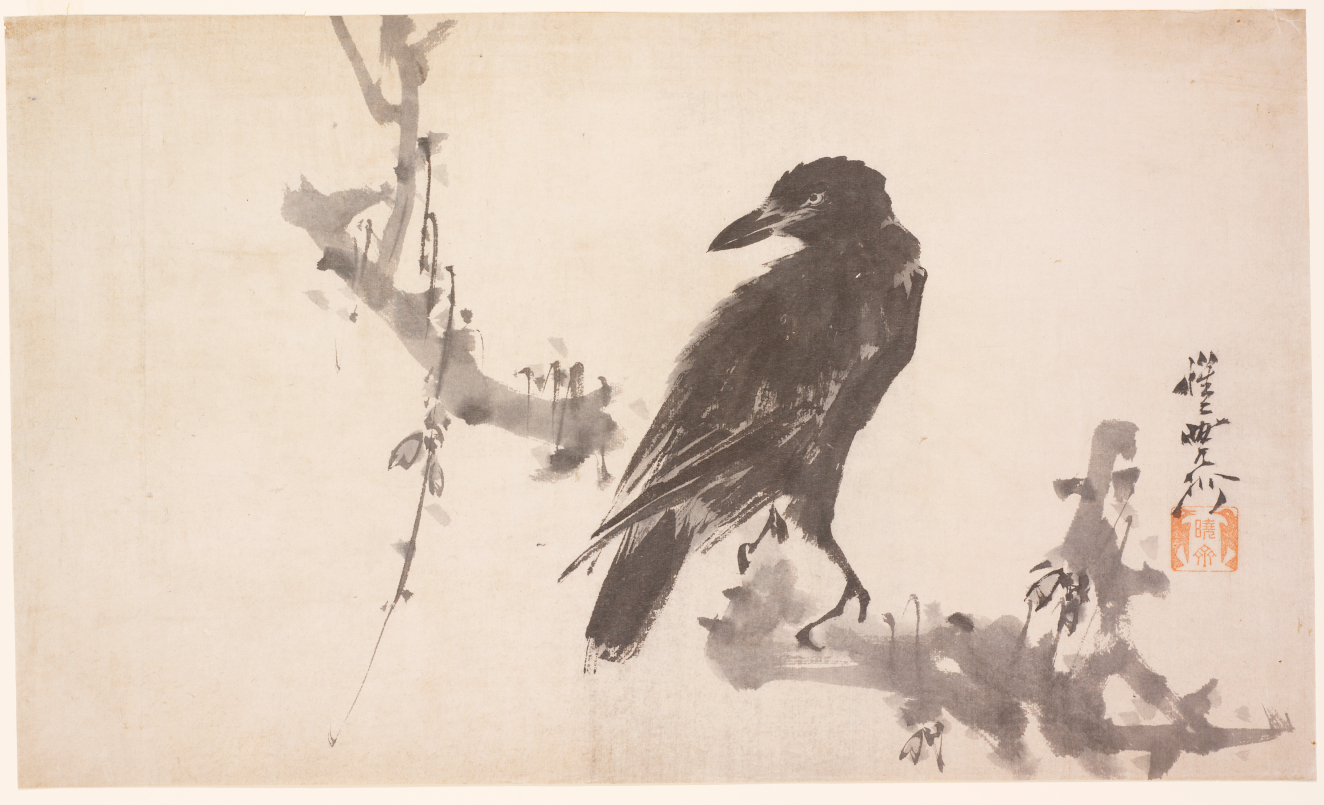Complete illustration of a magpie in a tree, Edo (Japanese period)