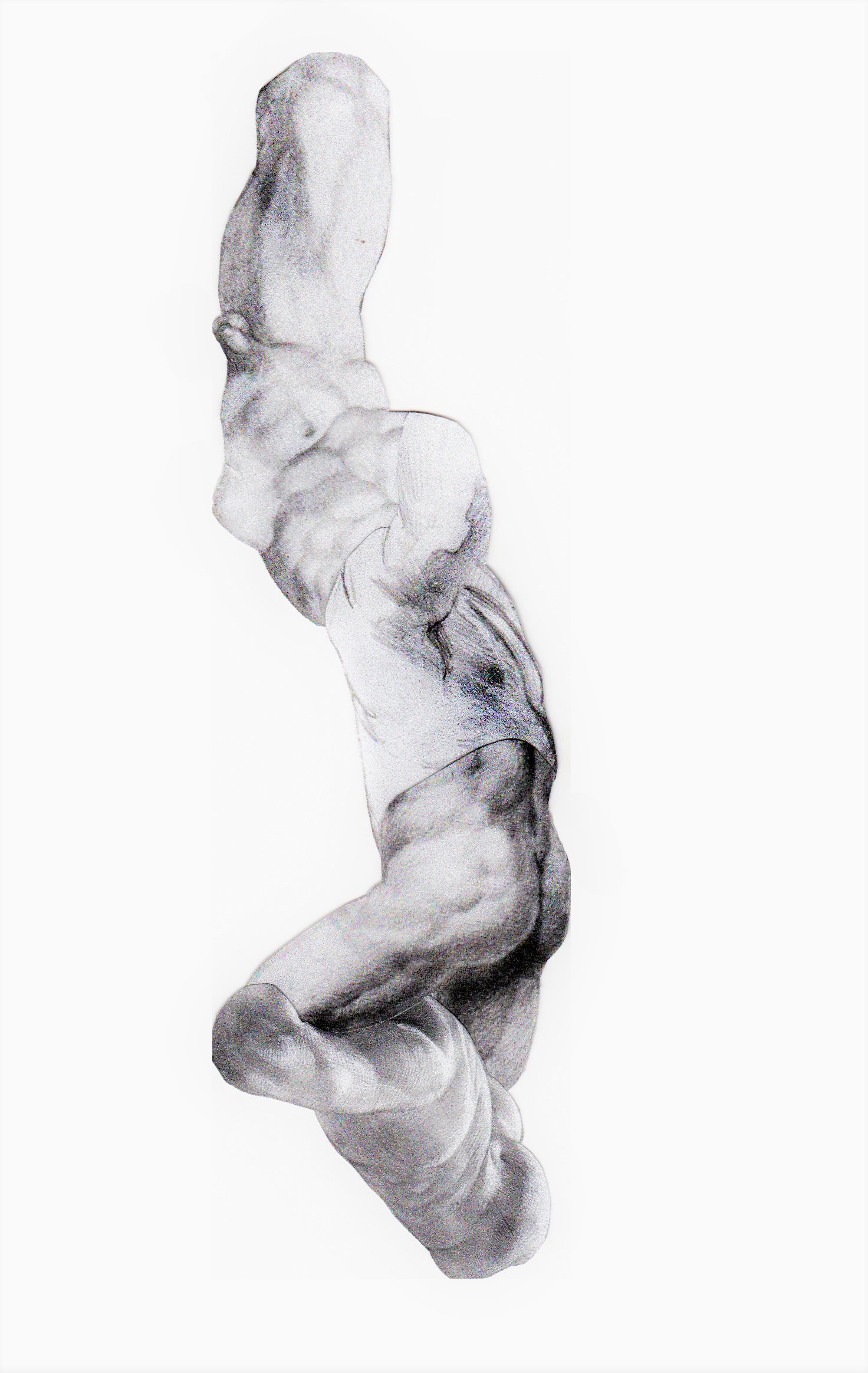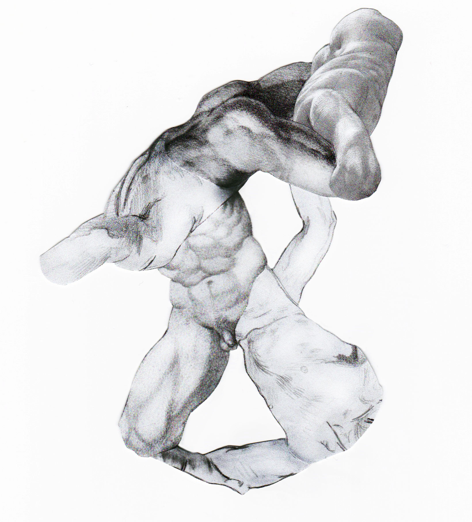 Earlier this summer, I began making collages using parts of bodies from different paintings and drawings that I had spent my past semester studying. My research interests have always involved the nude male body, searching for ways that art has shaped and been shaped by societal constructions of masculinity, sexuality, and race, primarily in the late nineteenth to early twentieth century. During my curatorial internship in the Prints, Drawings, and Photographs department, my work included researching and looking critically at representations of disability. Endlessly scrolling through the collection digitally, looking for rare examples and depictions of otherness in the multitude of drawings and etchings, what I ended up looking at was a lot of the same type of form. Muscular, beefy, able-bodied cisgender males. The images began to swirl together.