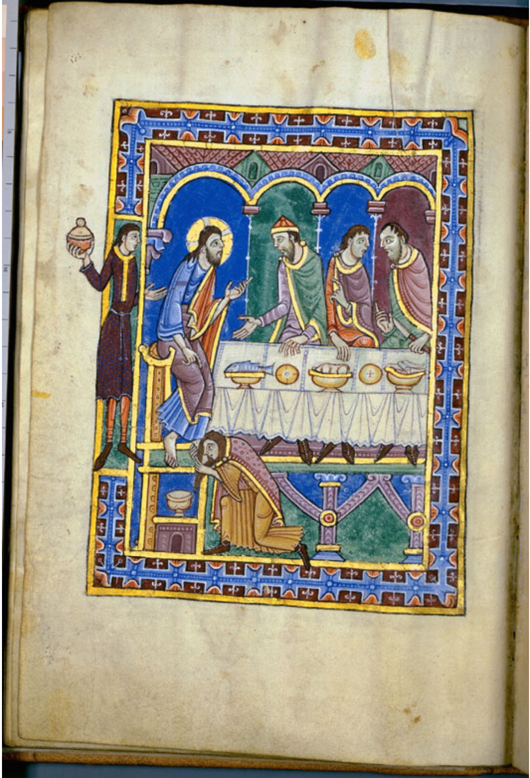 Christ in the House of Simon the Pharisee, the St. Albans Psalter, twelfth century, ink on parchment, St. Godehard, Hildesheim. Image from St. Godehard, Hidesheim.