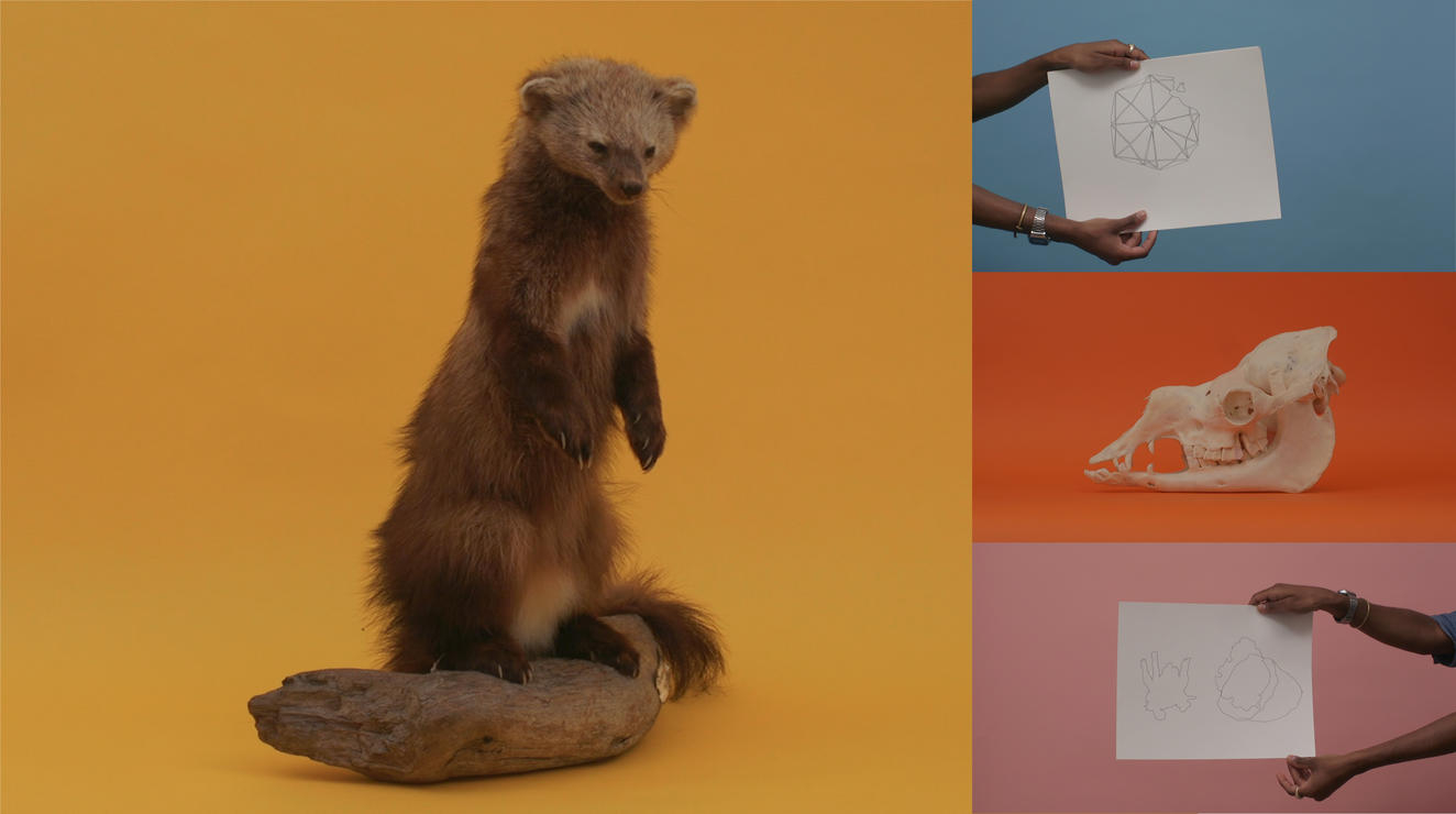 In addition to making a range of specimens and examples available for use, we created a bilingual video series which served as an entry point for visitors to approach historical and contemporary drawing processes. These simple video montages gave welcoming visual instruction in both English and Spanish. Made in collaboration with RISD students and local artists, the videos presented a playful entry-point for visitors through vivid and absurdist montage. As a result, visitors were able to gain confidence to use drawing as a tool of discovery, regardless of prior personal experience. This project received an internationally competitive award from the Society of Environmental Graphic Design.
