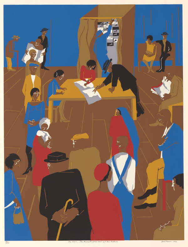 Looking closely at a print by artist Jacob Lawrence showing voters in the 1920s, artist and activist Jordan Seaberry shares why voting matters. He leads us through the process of voting at a polling station and emphasizes the struggles experienced especially by people of color in their fight for the right to vote in the United States. He explains the differences between local, state, and federal elections; how to register to vote; and why ongoing barriers to voting should motivate you to register, vote, and keep voting.