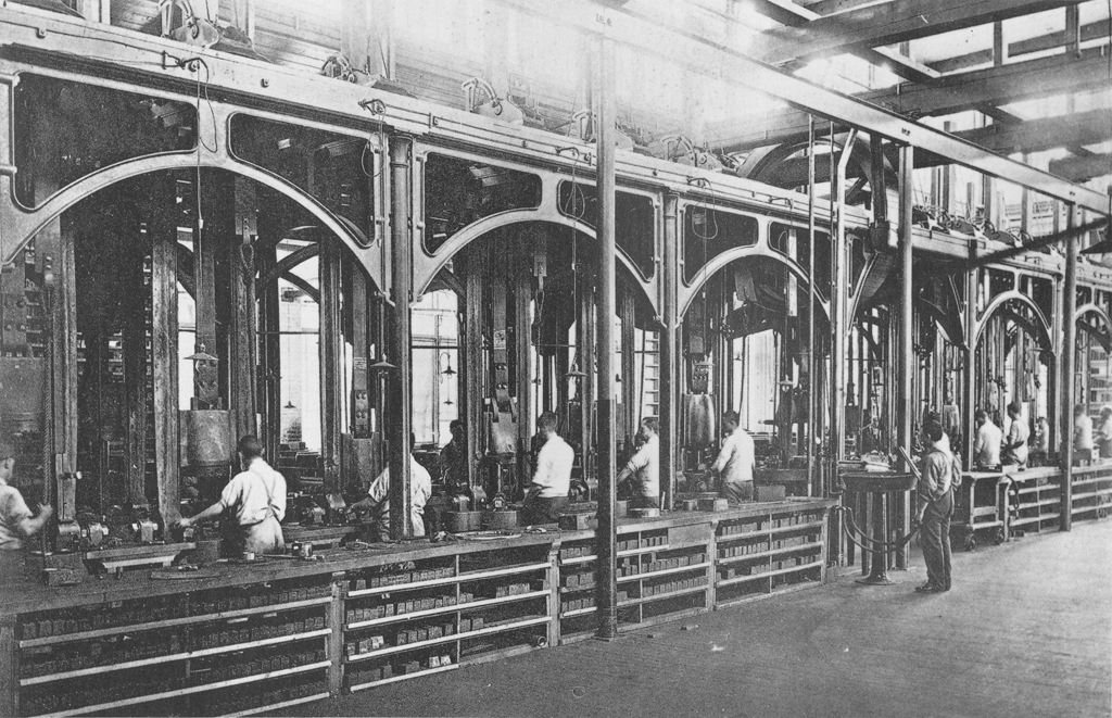 Drop Press in Gorham Manufacturing Company preparatory room, Elmwood Manufactory, Providence, RI., ca. 1890. Courtesy John Hay Libra.
