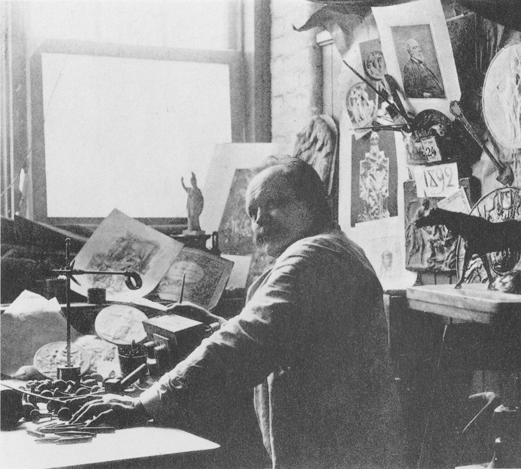 Antoine Heller in Gorham Manufacturing Company design studio Elmwood Manufactory, Providence, RI., 1892. Courtesy John Hay Libra.