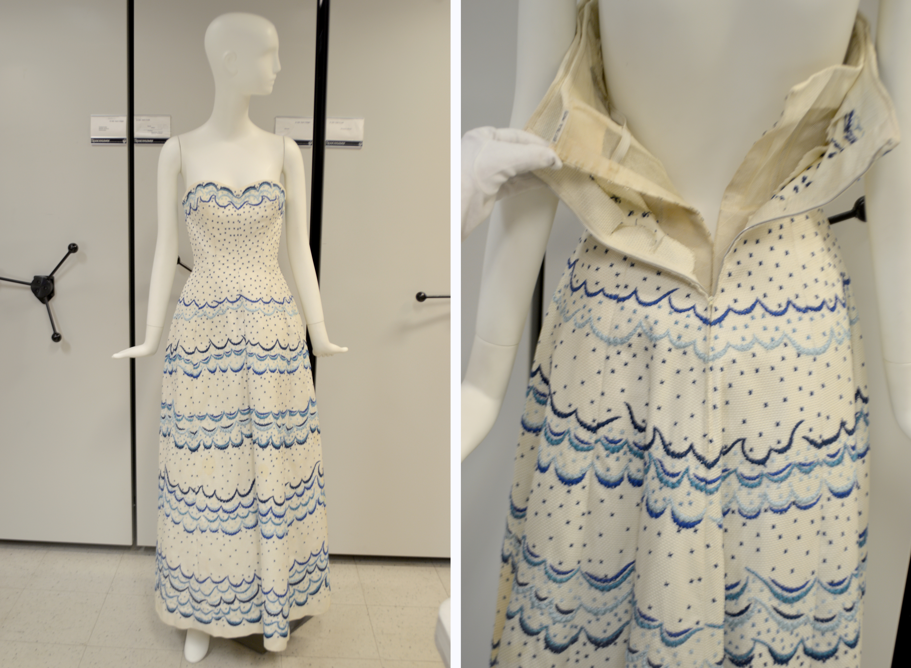 Two views of Christian Dior's "Nuit d'Espagne" ball gown, 1954. Gift of Mr. and Mrs. John P. Sturges.