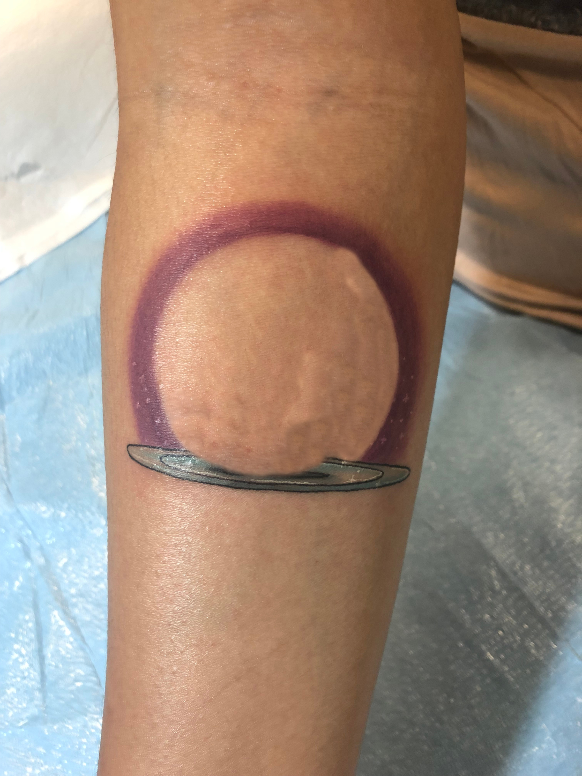 For example, one of my tattoos features a feather landing softly on water with a small halo around it. Meant to symbolize that in my darkest moments, my family always managed to catch me and help me land more gracefully than I ever could alone, the tattoo reminds me to keep going. Every part of my tattoo is necessary. As such, if I were to remove any part of it (as I have shown below with the help of Photoshop), the context of it would shift.