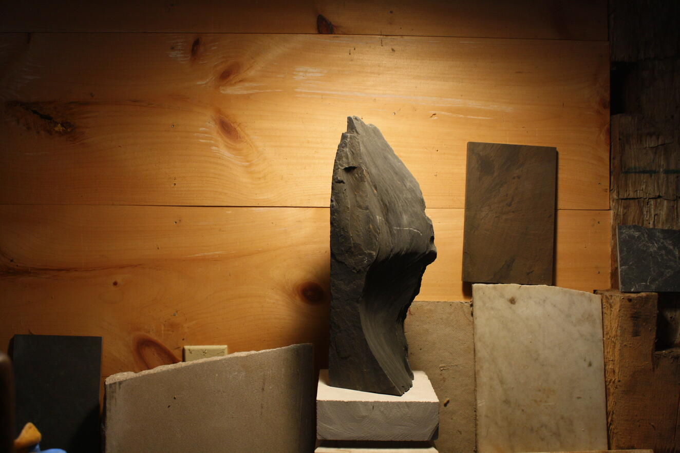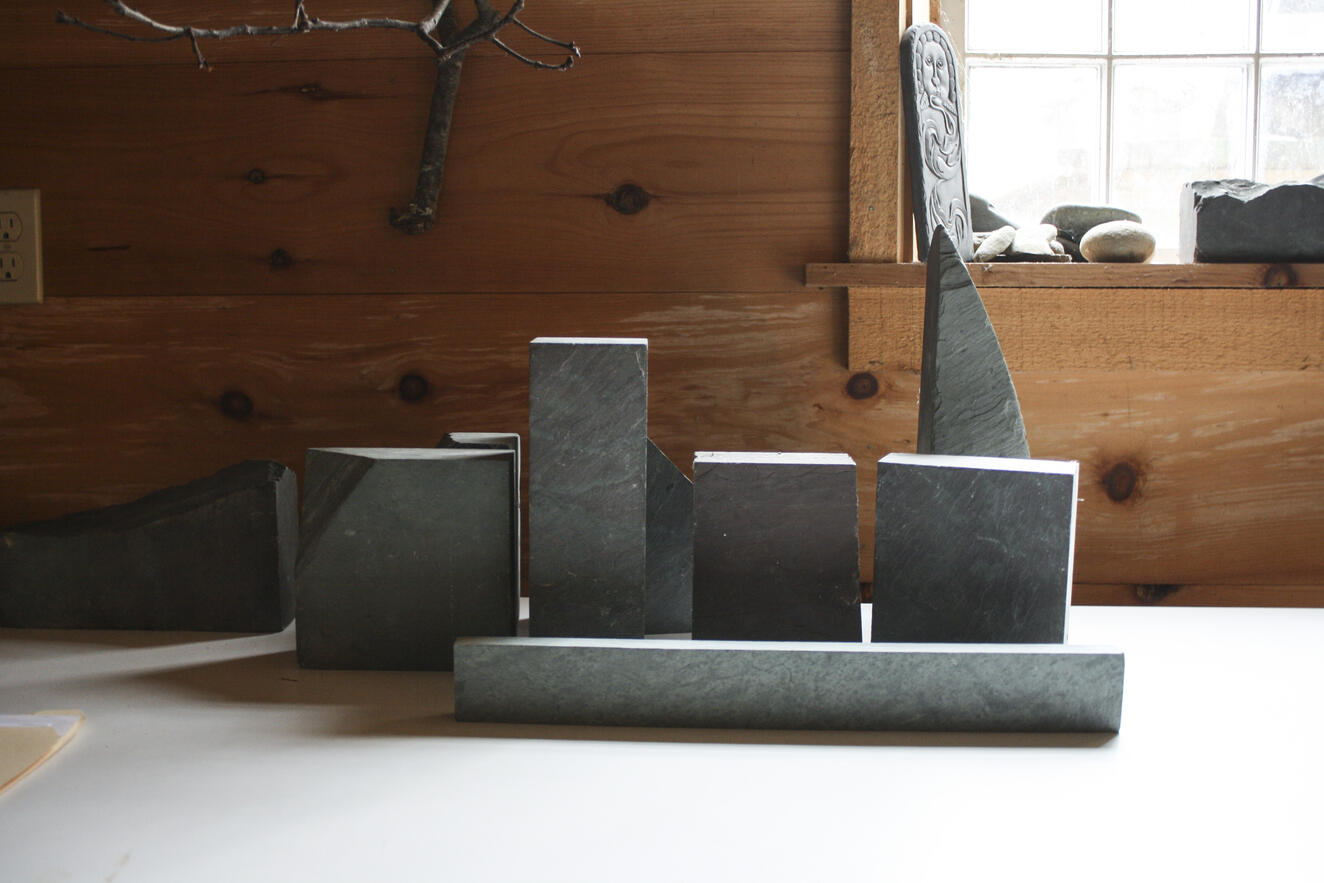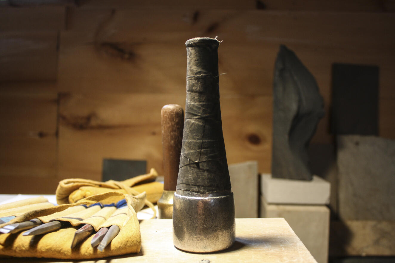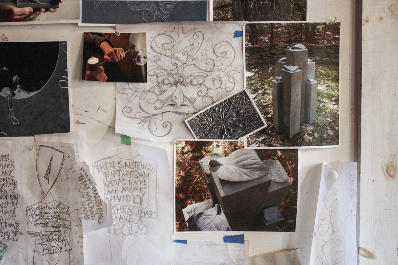 Mahaffey works primarily with slate, which she often sources from Vermont, Virginia, and England. The finest slate, she says, is from a quarry in Wales. Often, stone carvers in Rhode Island band together to group-order stone from the best quarries overseas.