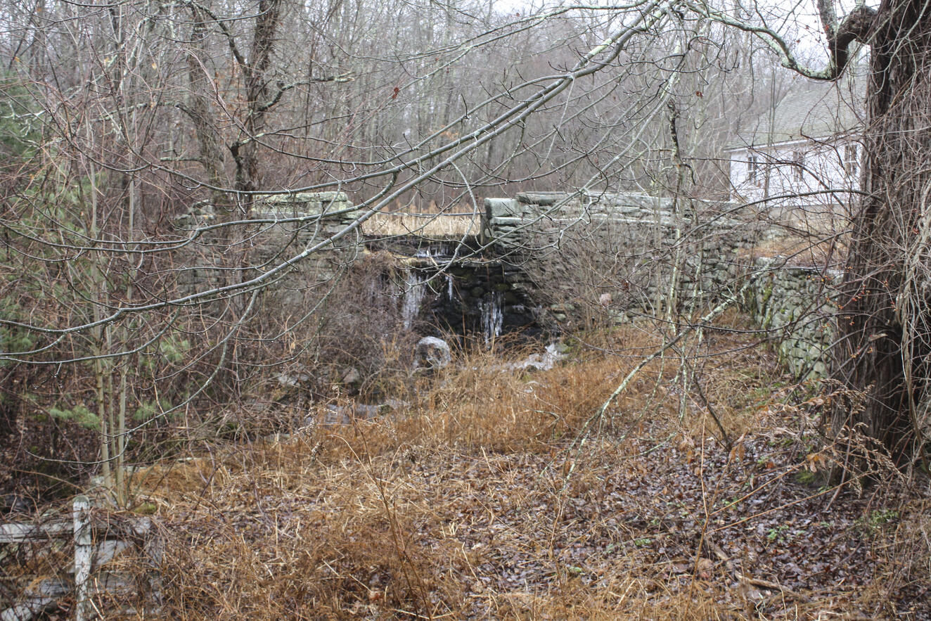 Mahaffey is inspired by the natural world: seashells, stones, dried leaves. This scenic view is the mill behind her studio, once used to power the wheelwright factory.