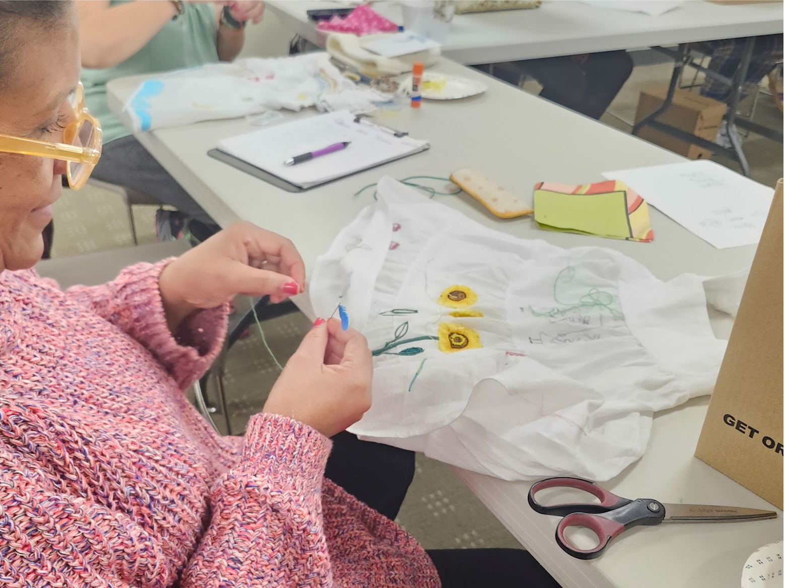 The works were shared at a gathering at the RISD Museum on March 16, 2024. The event was attended by the participants, Carolina Briones, and Kate Irvin, curator of costume and textiles. Carolina and Kate awarded certificates of completion during a small ceremony. Thanks to Kate’s efforts, each participant also received artist membership to the museum. These small gestures—which might seem minor—carry great significance for these women. For many of them, it meant occupying and claiming space in an institution that often feels inaccessible to local people. In most cases, this certificate is the only one they have ever received in their lives.
