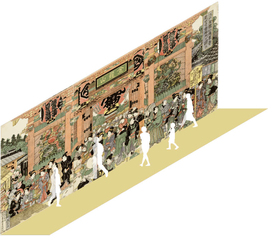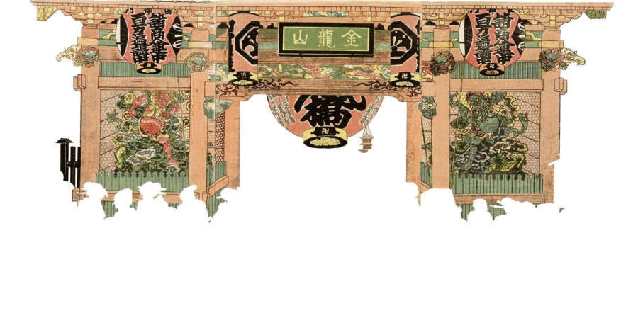 Keisai Eisen 渓斎英泉 Picture of the Kanzeon Raijin Gate at the Kinryuzan Sensoji Temple in Edo (Edo Kinryuzan Sensoji Kanzeon Raijinmon no zu), Edo Period